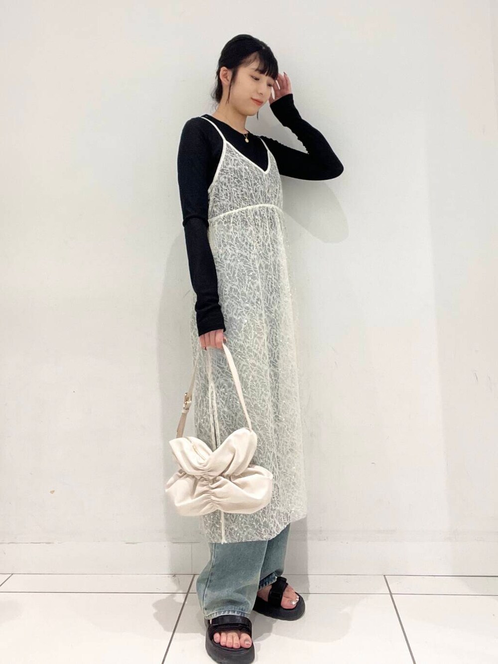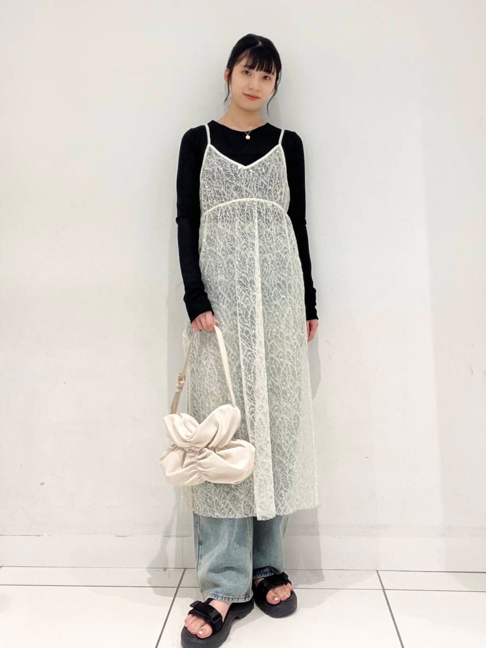 キャミワンピースは、スパンコールが入った今年っぽさを取り入れられるレイヤードアイテムを使ってます︎💕︎