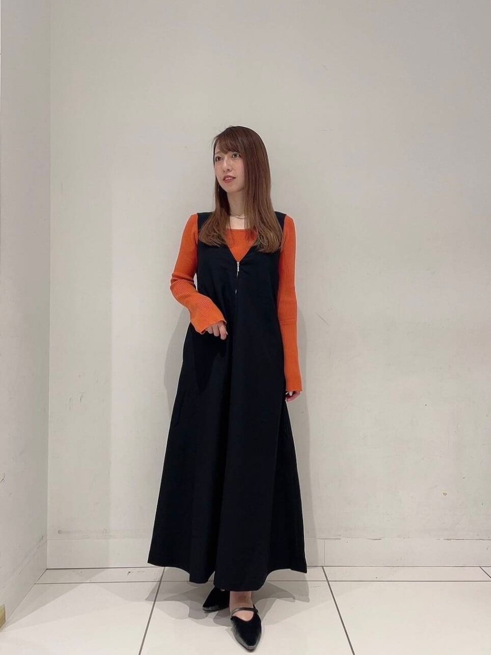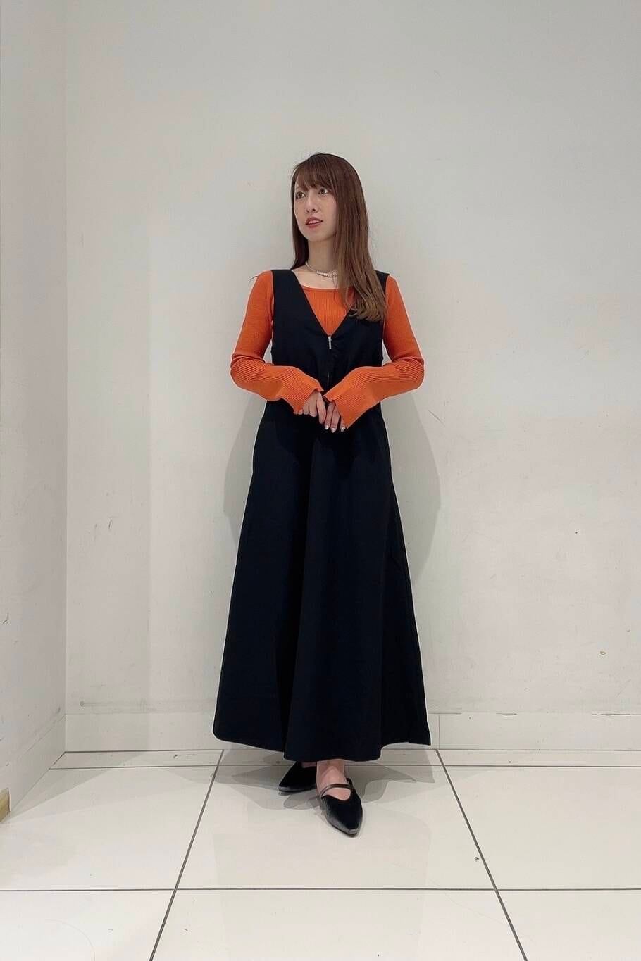 定番のジャンパースカートはハイウエスト・前後2way仕様になりアップデート。初秋はノースリーブやTシャツ合わせがおすすめです。コンパクトなニットやカーデ合わせ、すっきりしたシルエットなのでアウターとの相性も◎