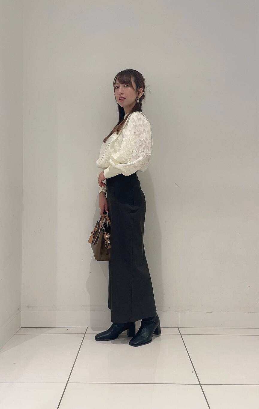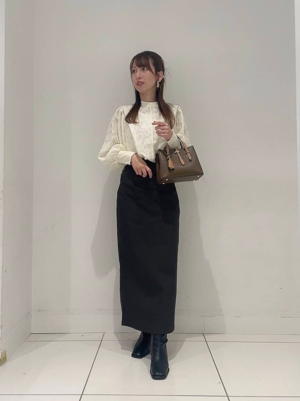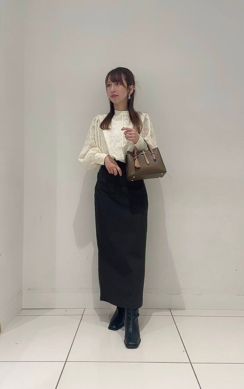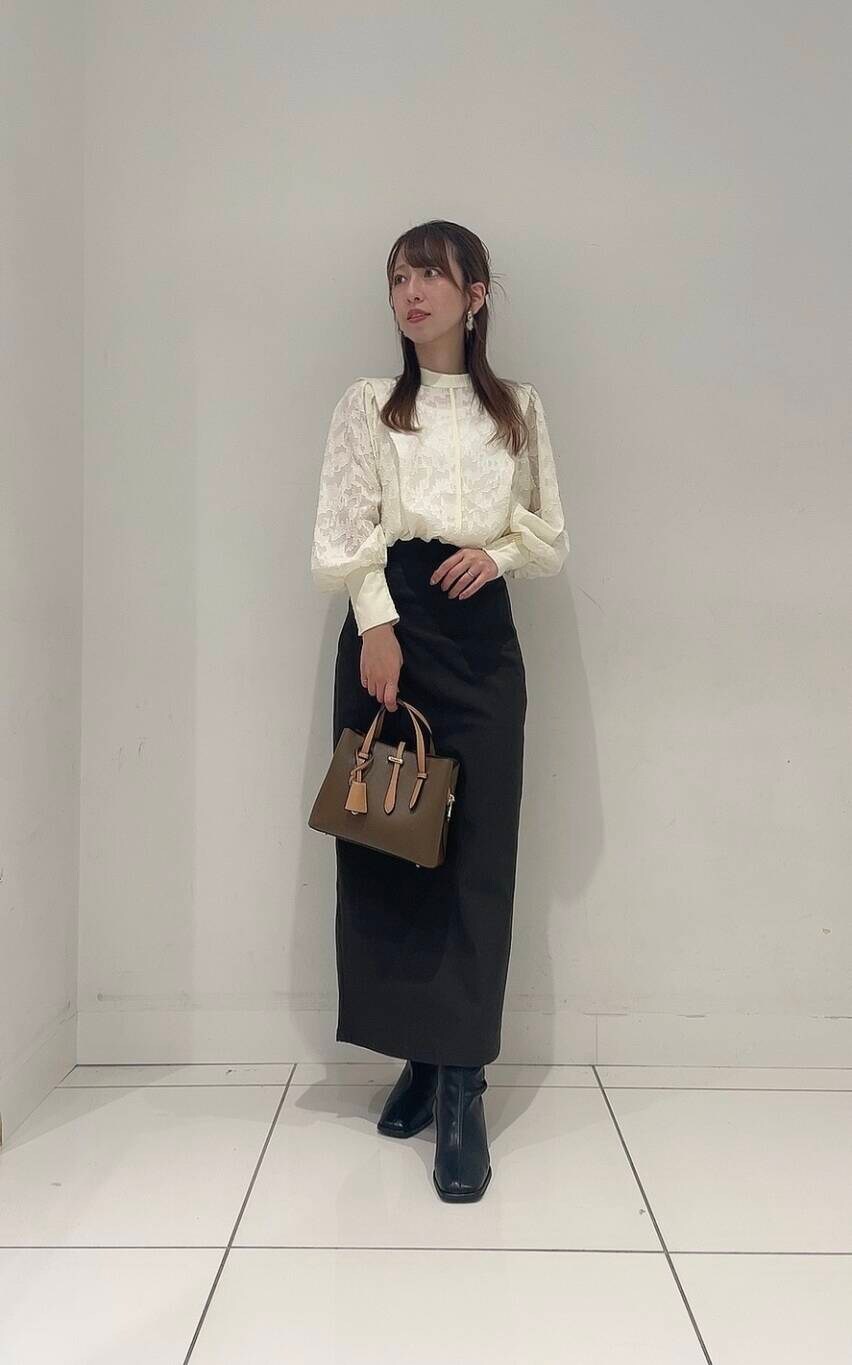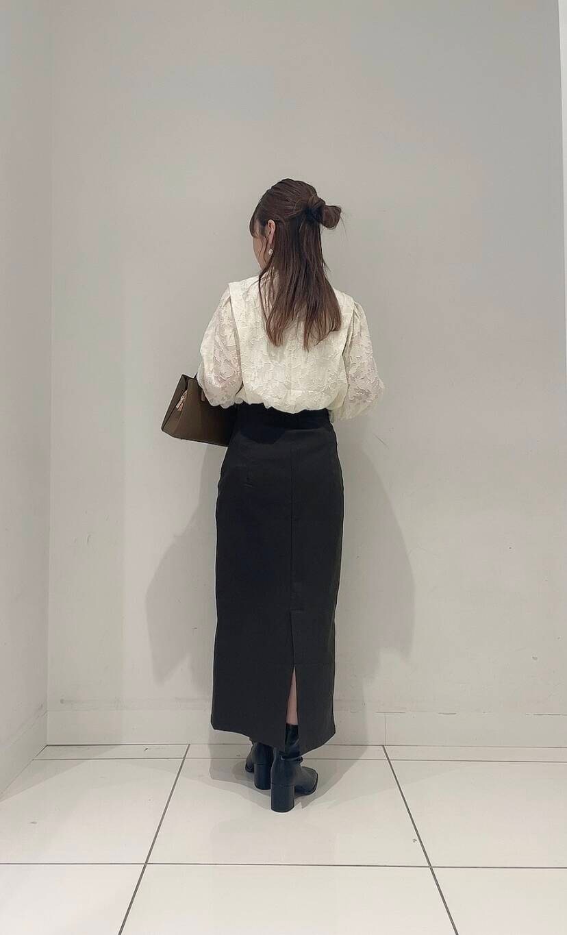 一枚で様になるブラウスなのでボトムスはすっきりとしたスカートを合わせるのがオススメです。