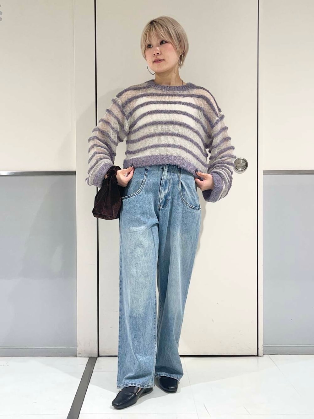 トップスのニットは柔らかくデザイン性もあるので目を引くこと間違いなしです!