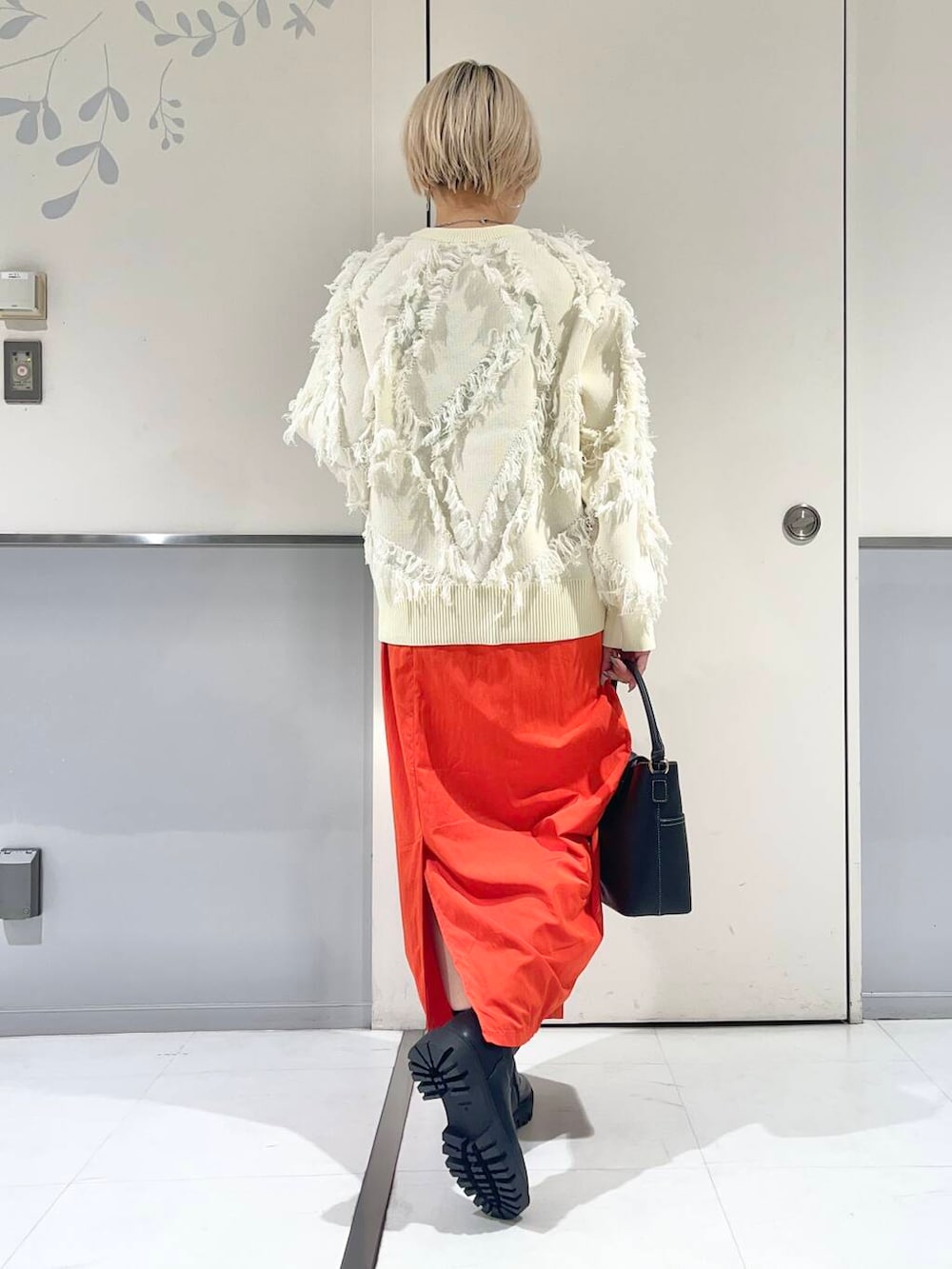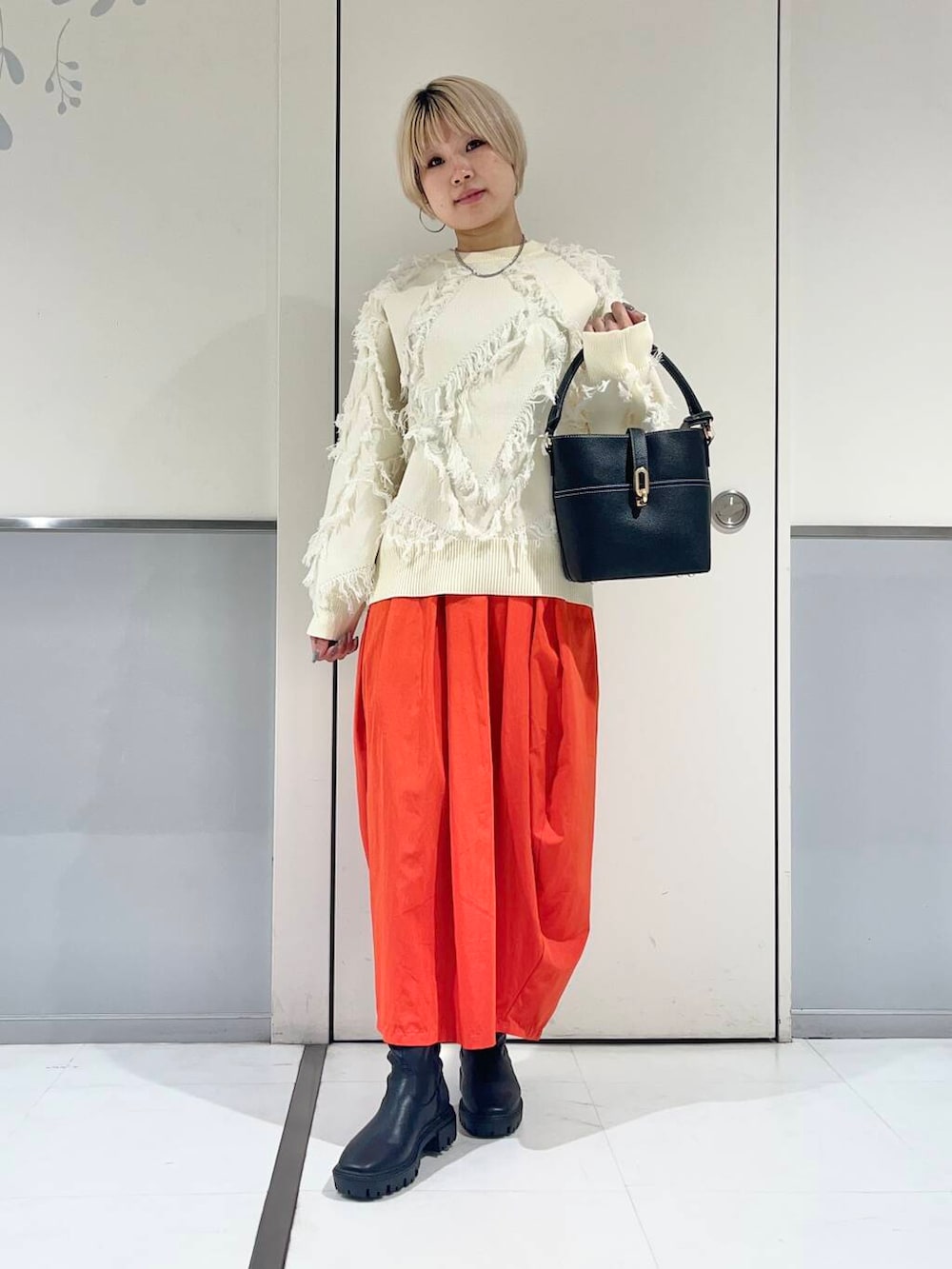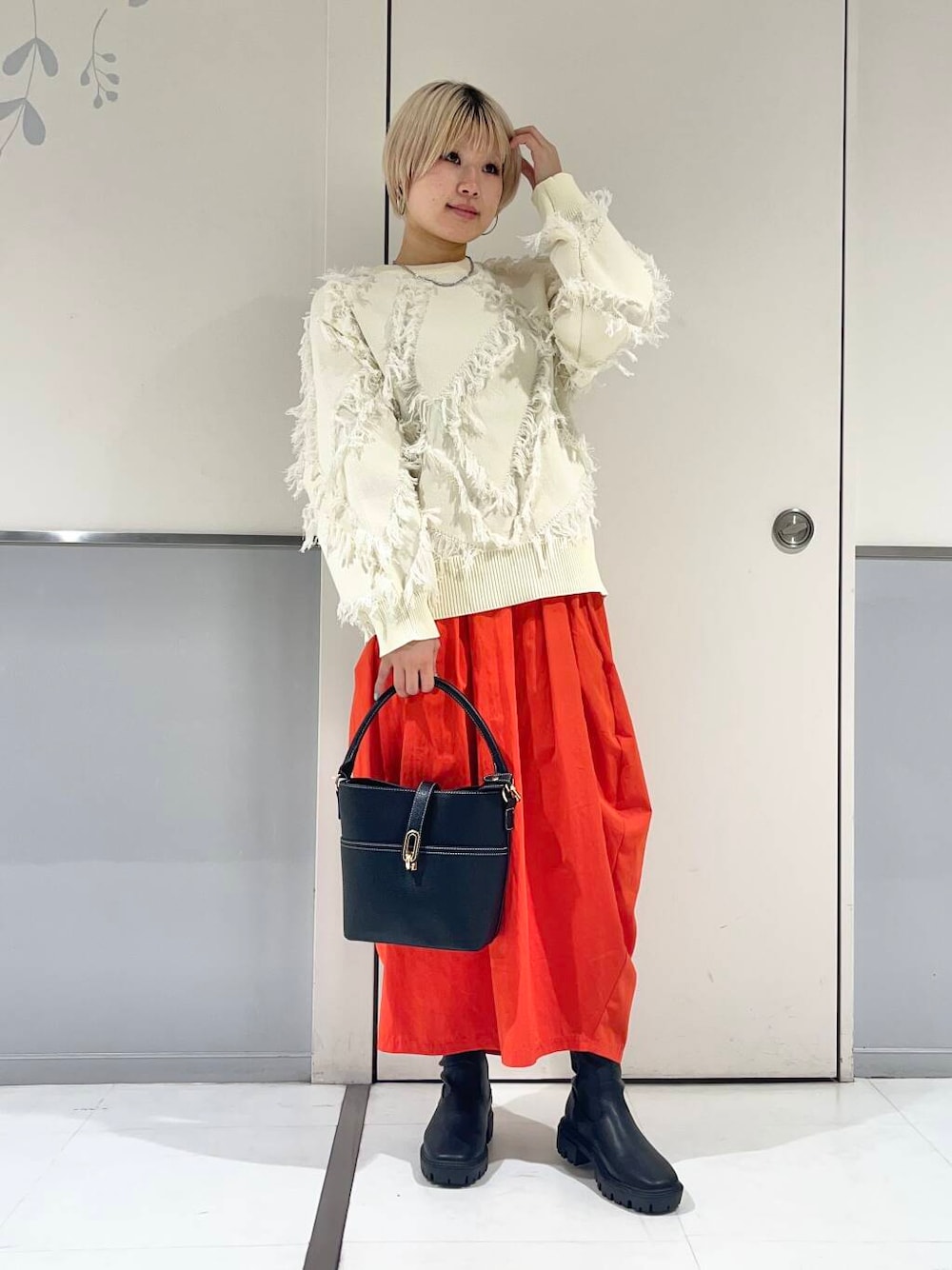 トップスのセーターは若干袖が長めでオーバーサイズ気味なのでゆったり着ていただけます♫