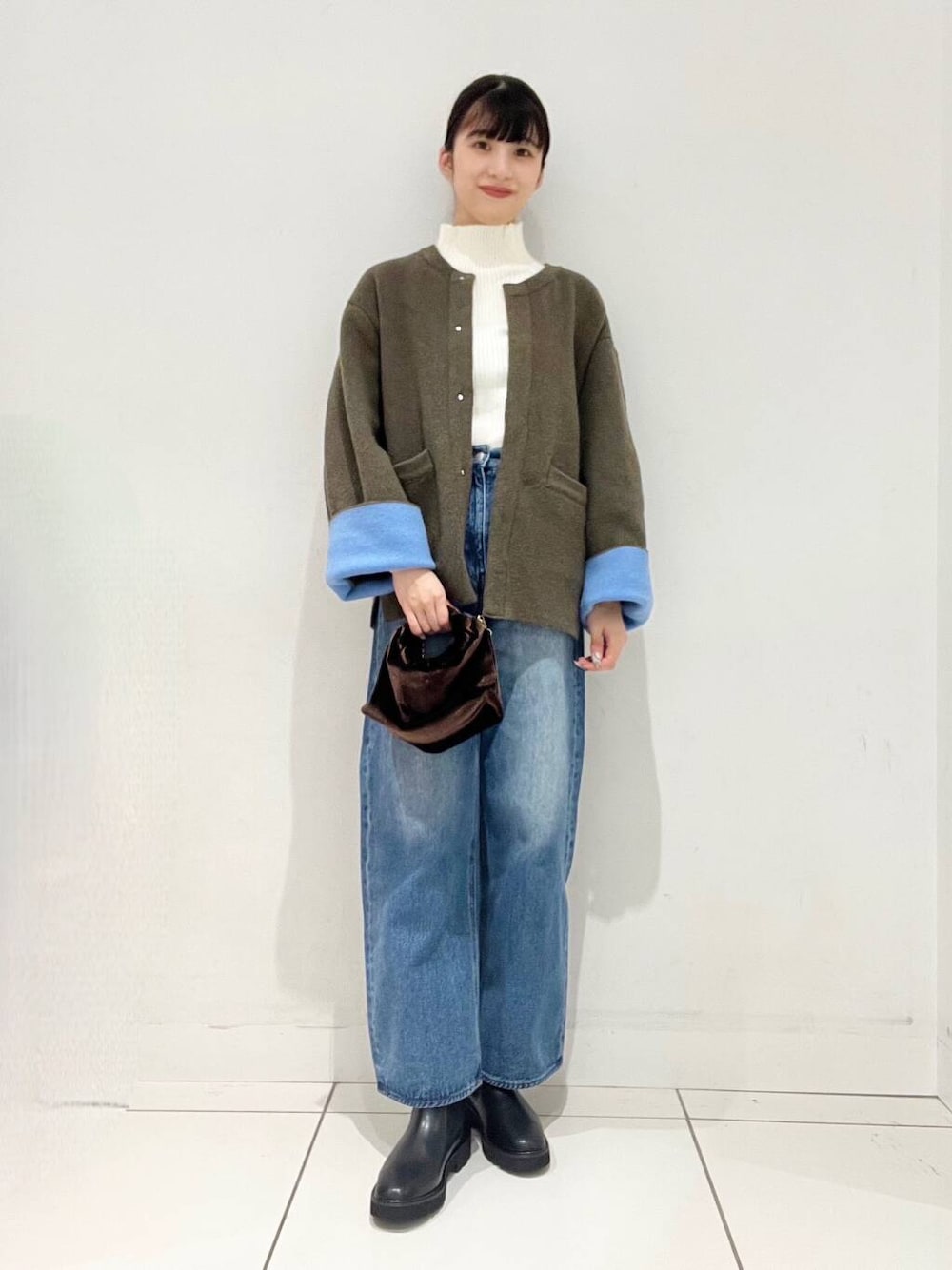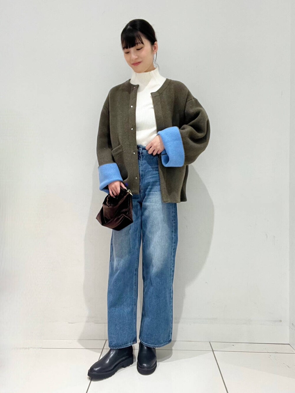 アウターは袖口のバイカラーをアクセントにしてコーデに取り入れやすくなっています👏🏻