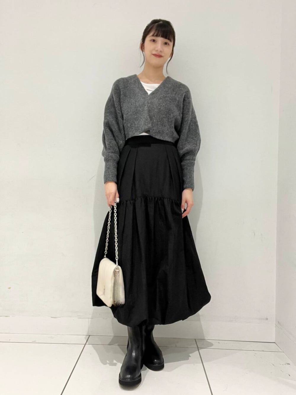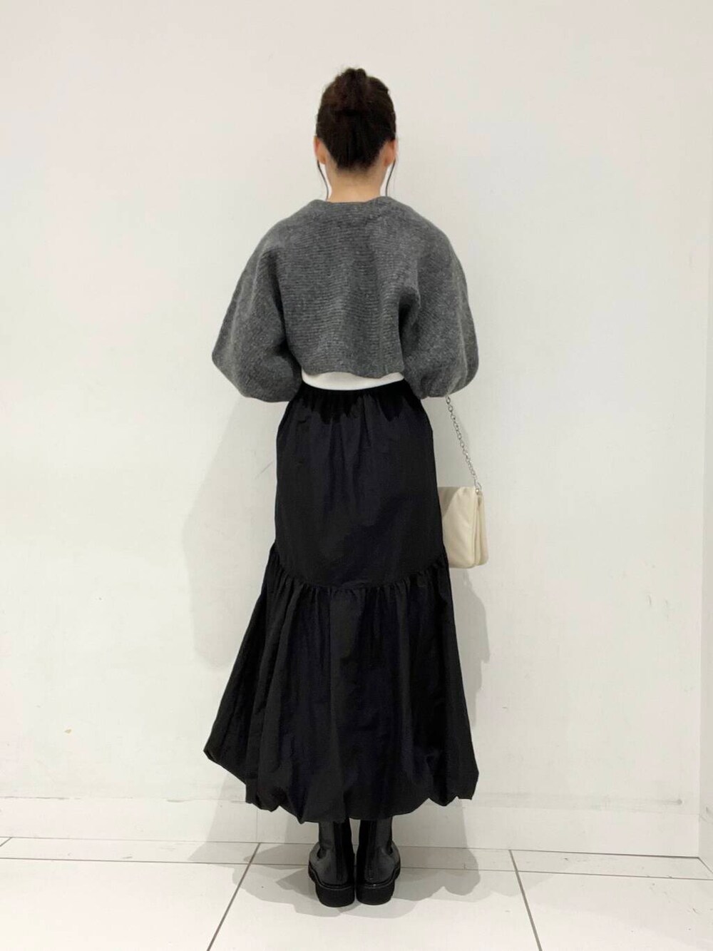 ショート丈のカーディガンと合わせると
