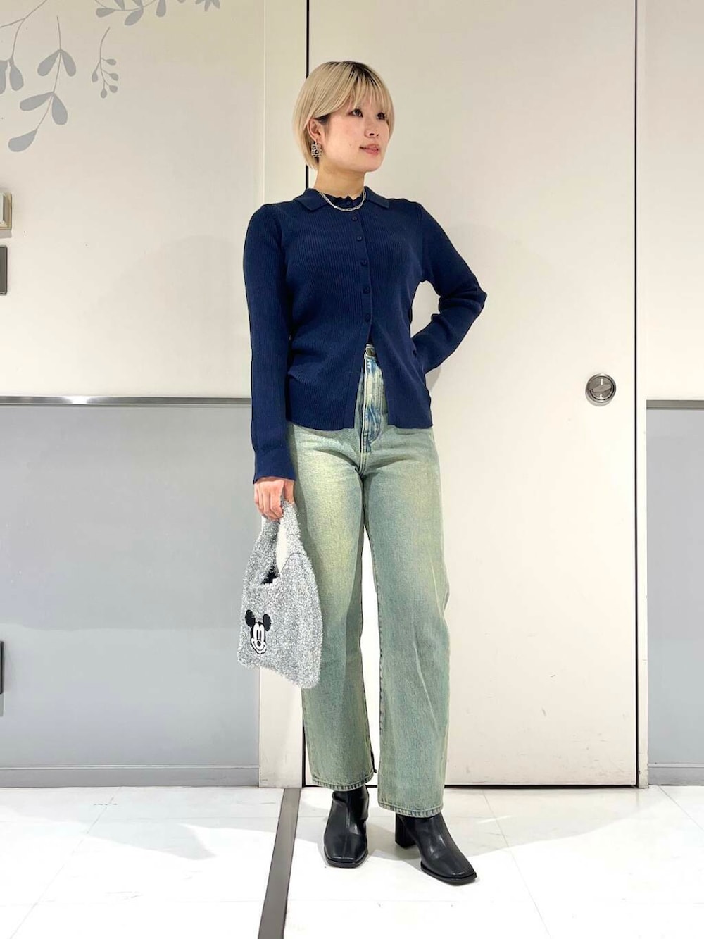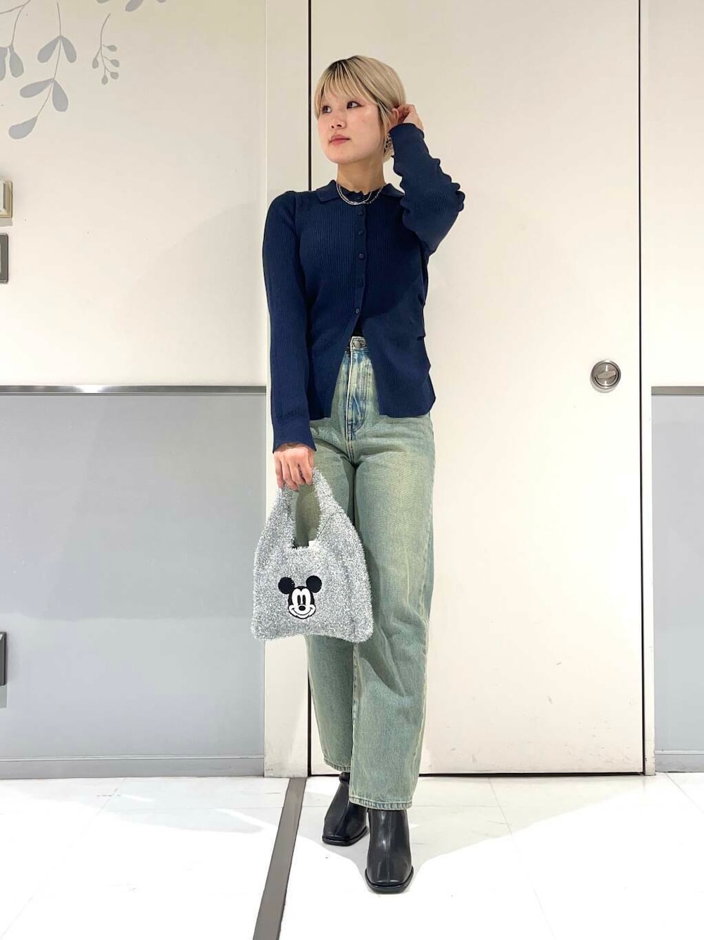 下にTシャツなどを着てボタンを開けても着膨れしにくいです◎