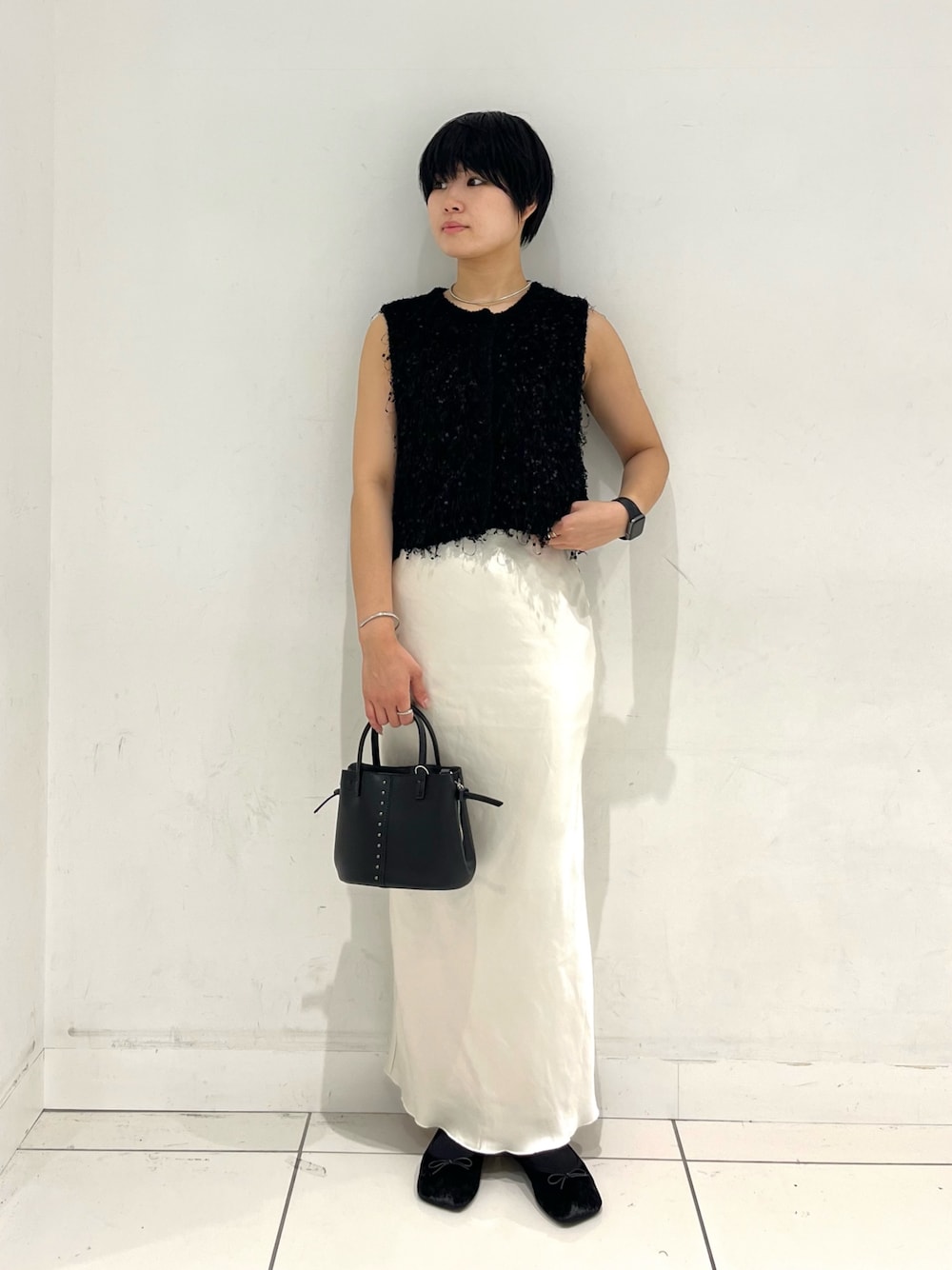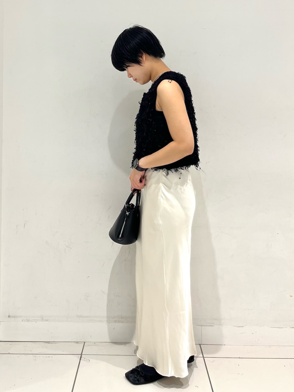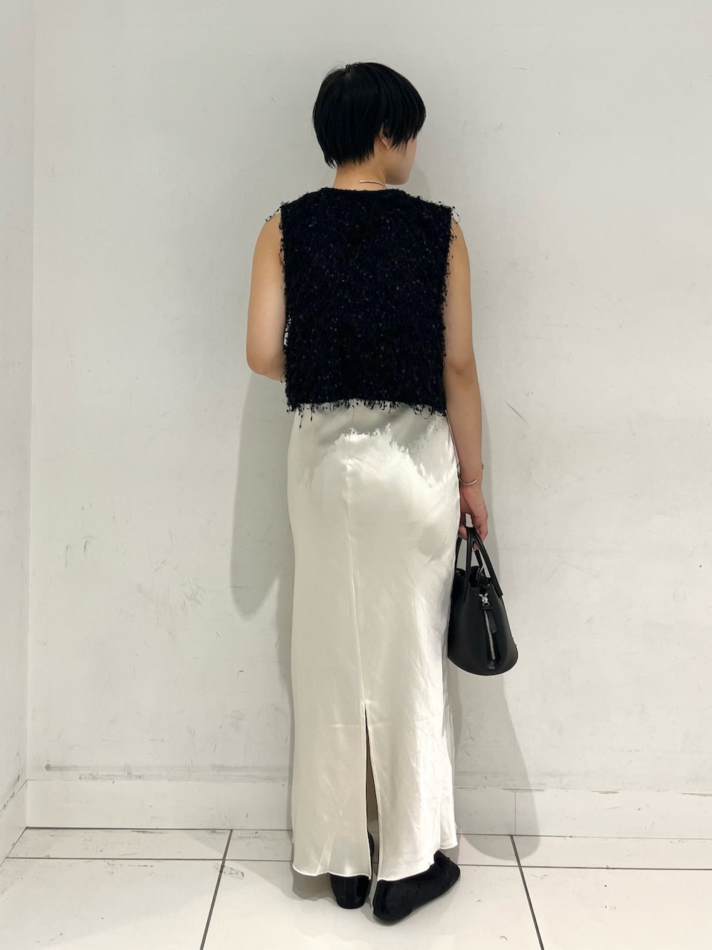 サテンアイラインスカートはバックスリットが入ってるのでピタッとし過ぎず歩きやすいです🙆♀️
