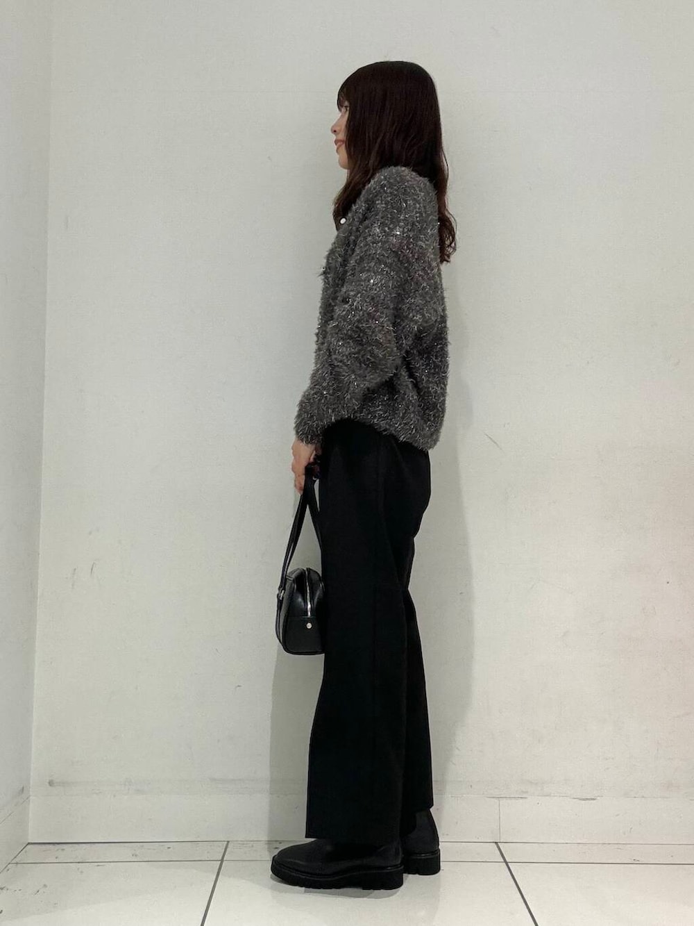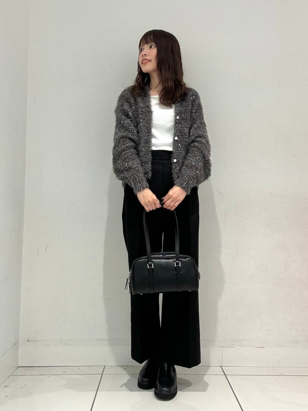 モノトーンで合わせても、セーターにラメがあるので一気に華やかに見せてくれます◉