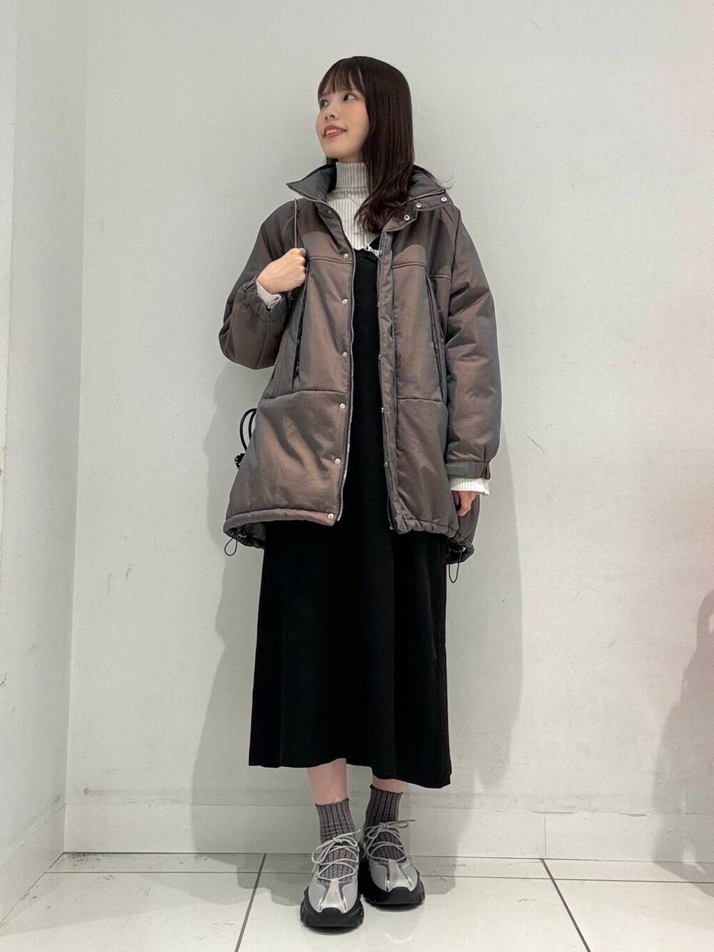 ブラウンを着用しているのですが、光沢感があってすごく可愛いんです!