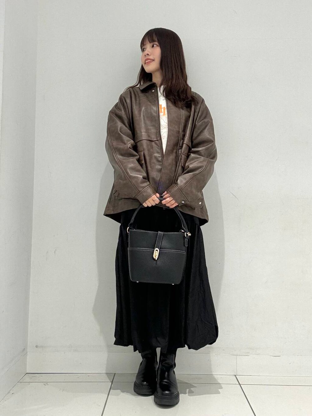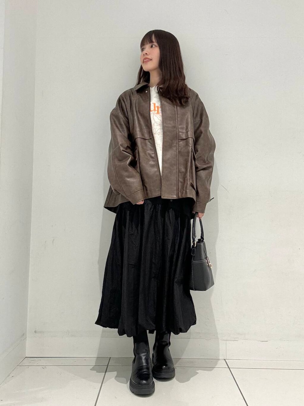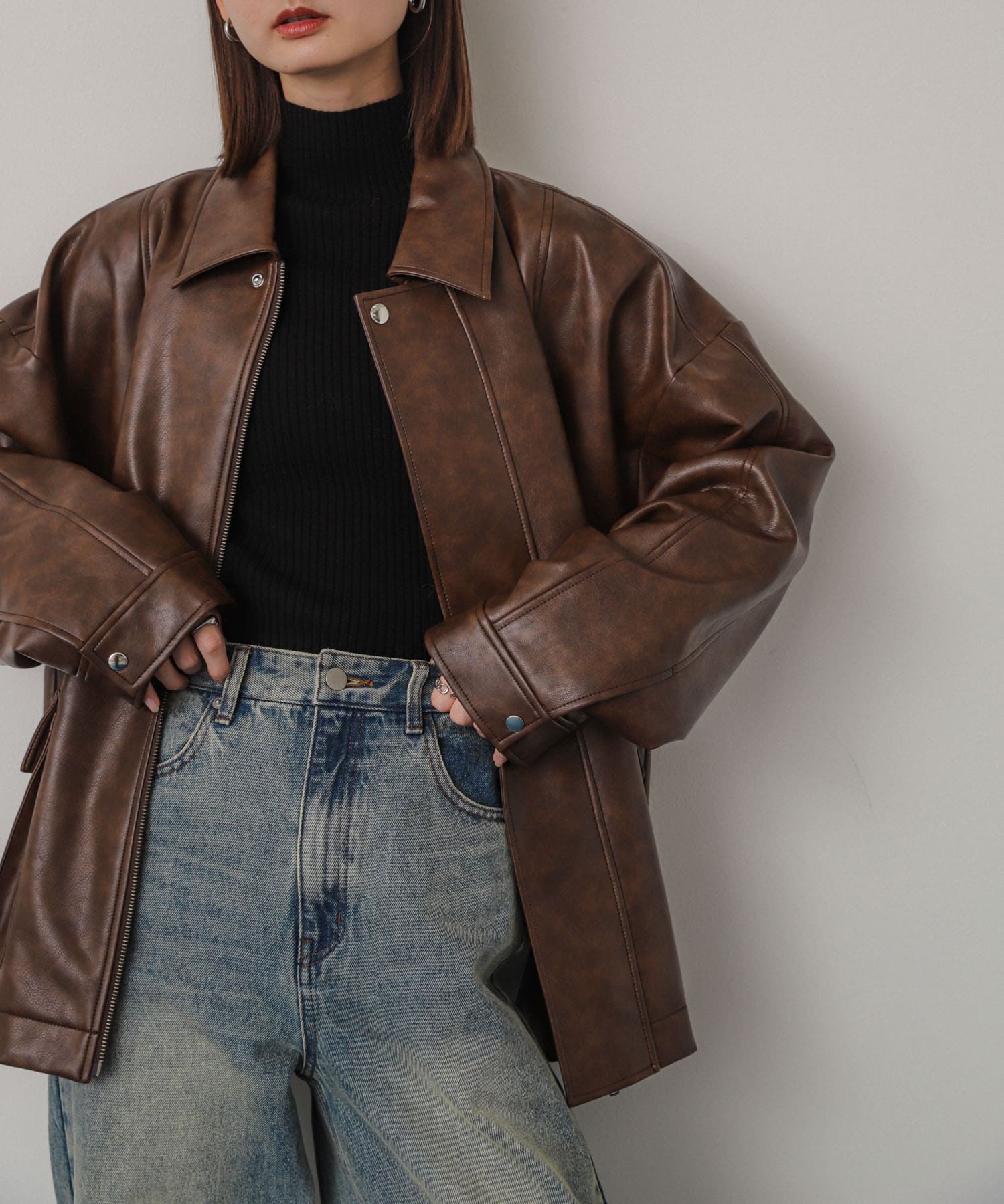 こちらのレザージャケットはオーバーサイズになっておりますので、中にスウェットを着てもスッキリ見せてくれます◉