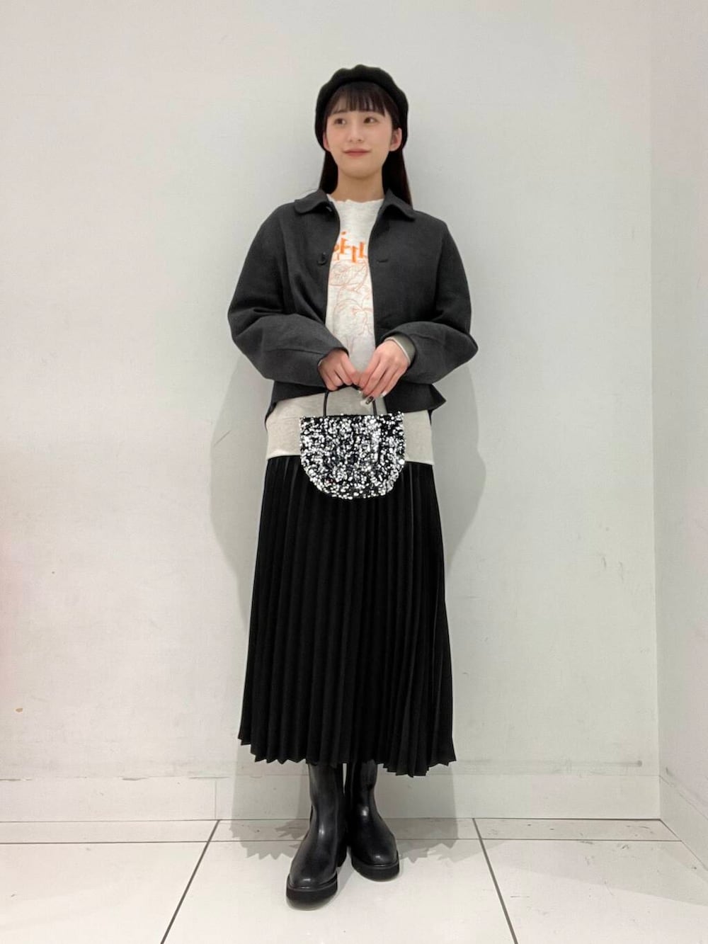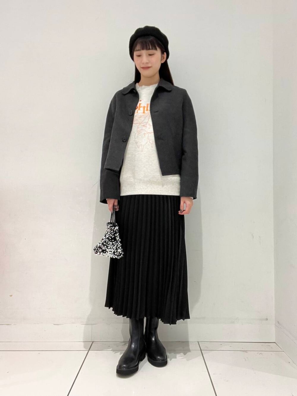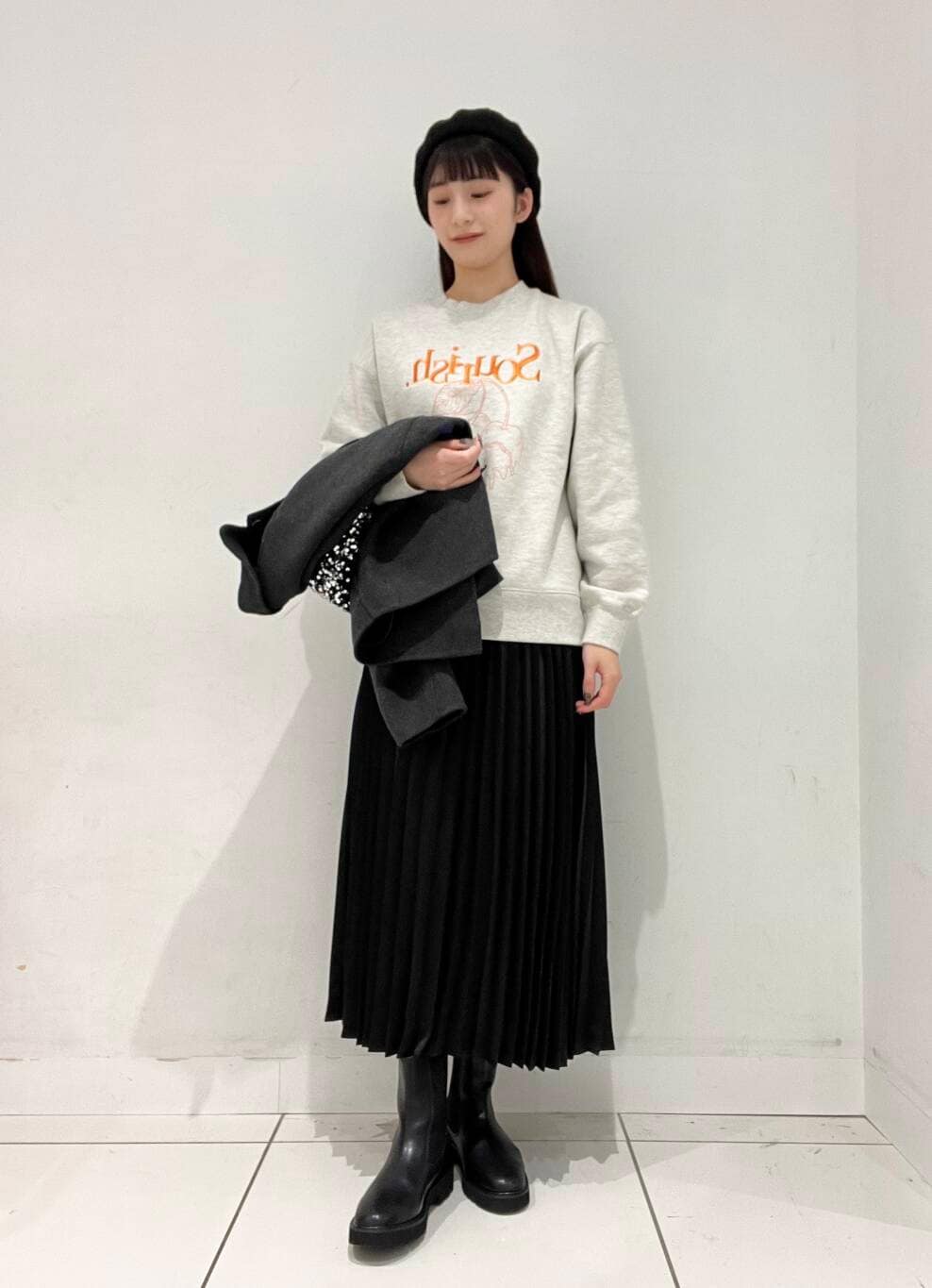 裏起毛で暖かいスウェットにプリーツがポイントのスカートでシンプルすぎないコーデです!✨️