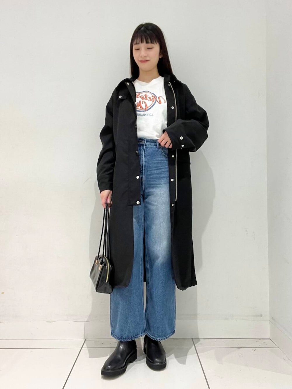 ハイウエストのワイドデニムでスッキリするのでロングコートとの相性◎!!