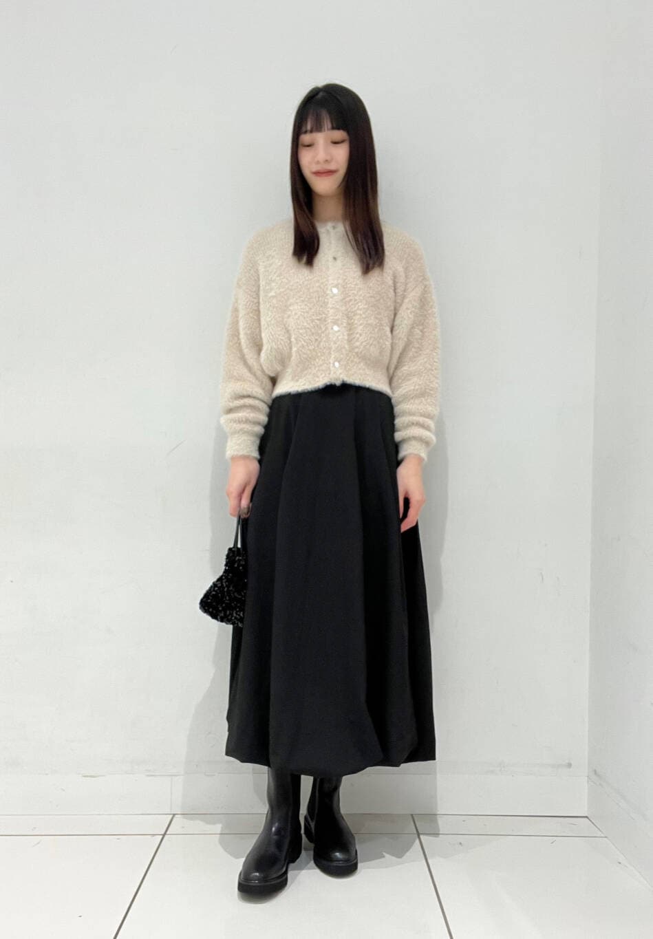 今回は当店でも人気のラメシャギークロップドカーディガンを使ってコーデを組んでみました!