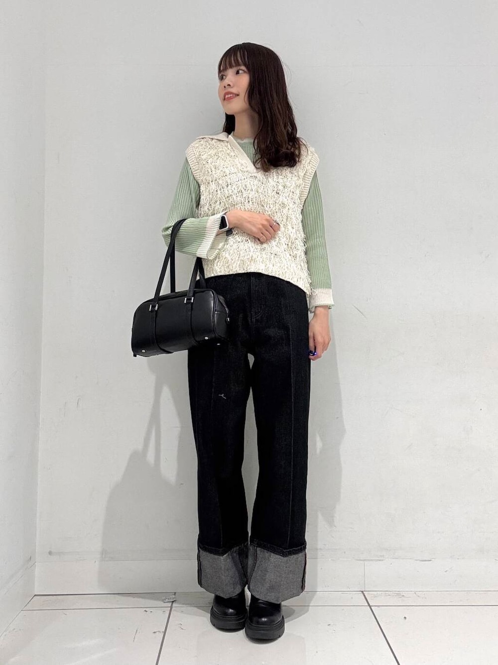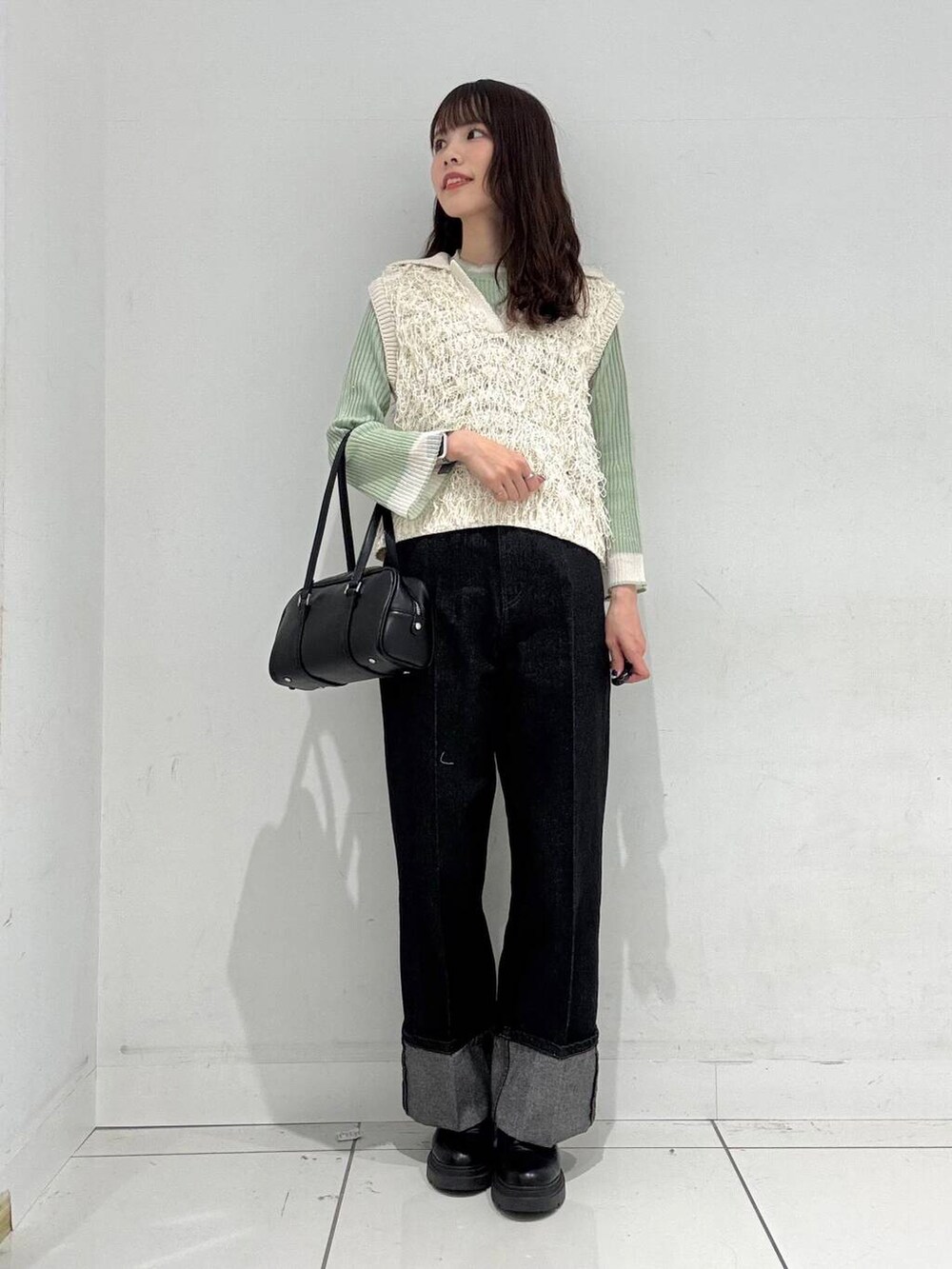冬は、アウターからチラッとベストを見せるとアクセントになってすごく可愛いです◉