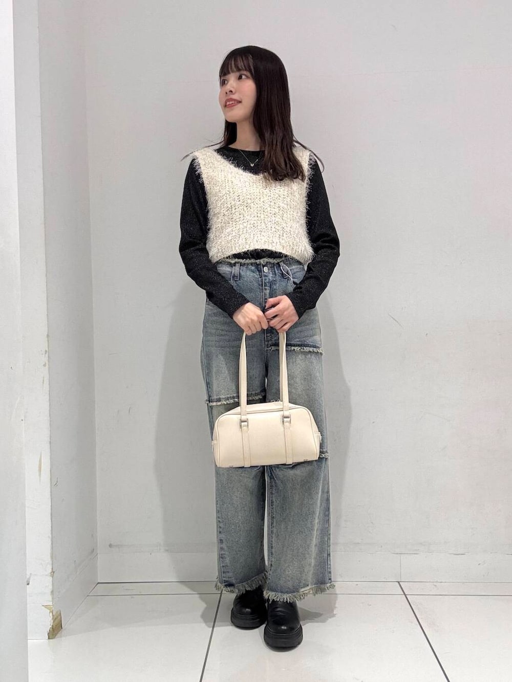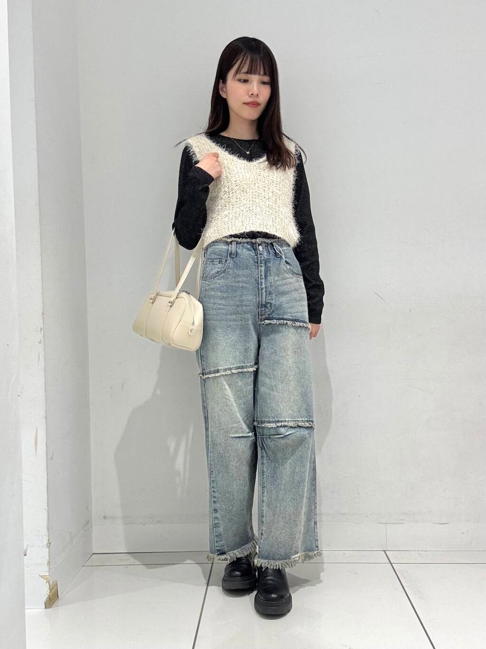 デニムはパッチワークデザインがめちゃくちゃ可愛くて、ハイウエストになってるのも嬉しいポイントです🙌🏻