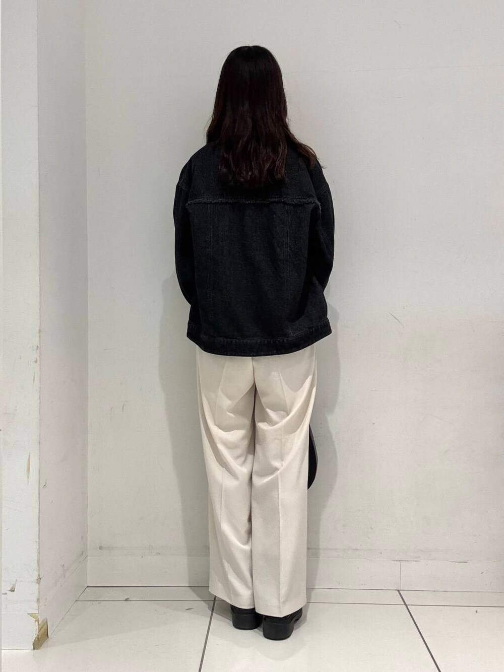 新作のデニムジャケットは、ノーカラーでスッキリとしたデザインになっており合わせやすくなっております◎