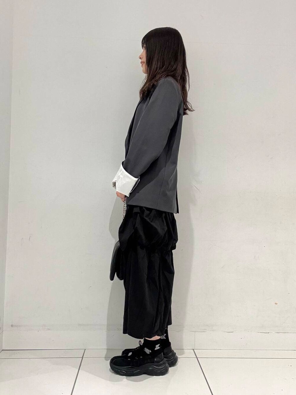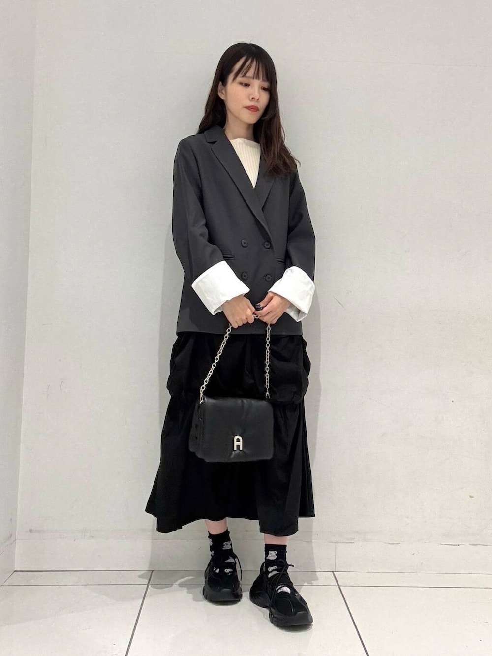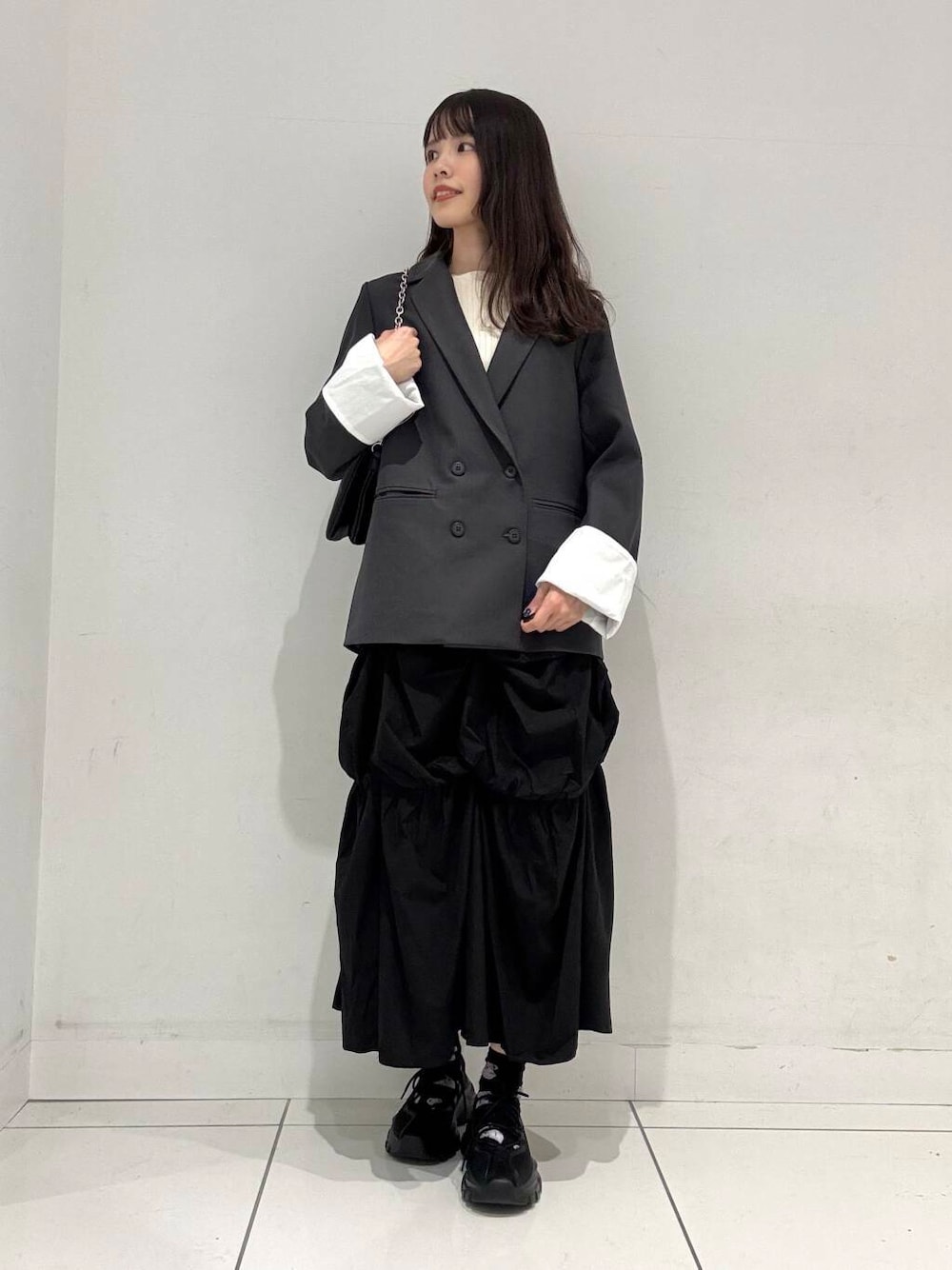 着用しているジャケットはスカートとセットアップとしてもお使いいただけるアイテムとなっております🙌🏻