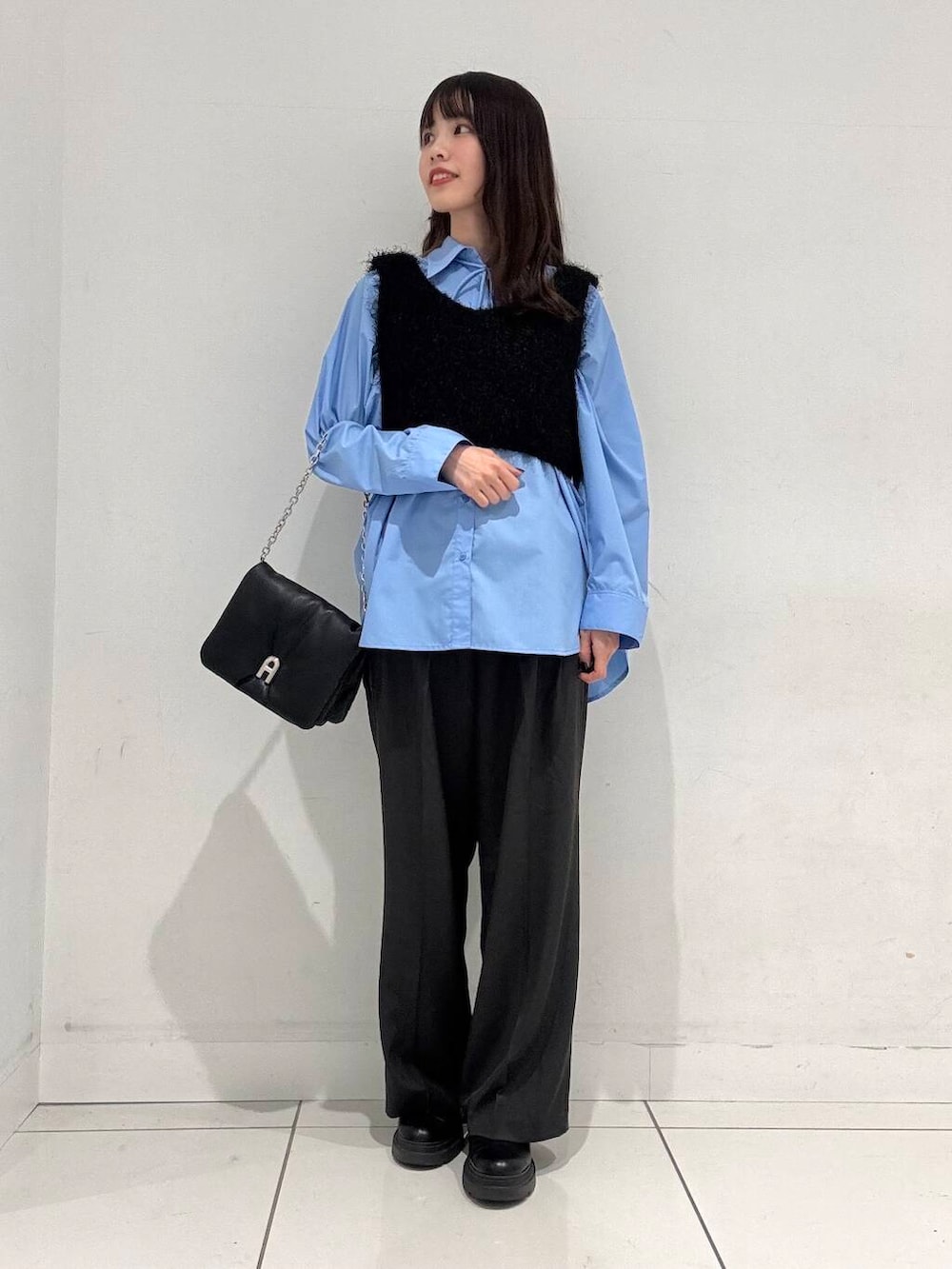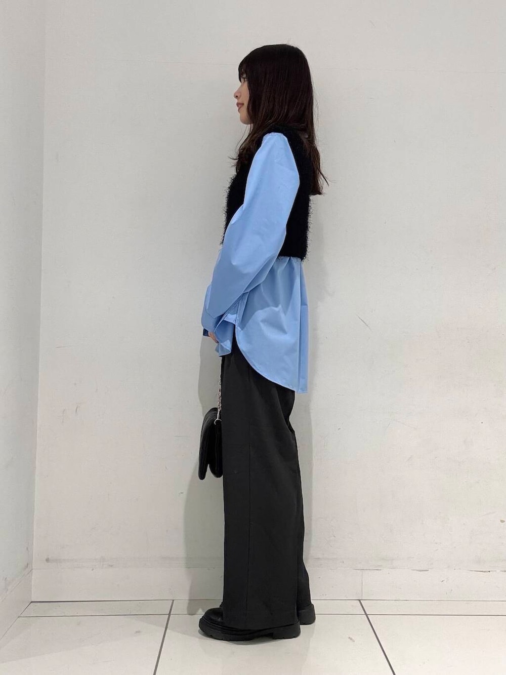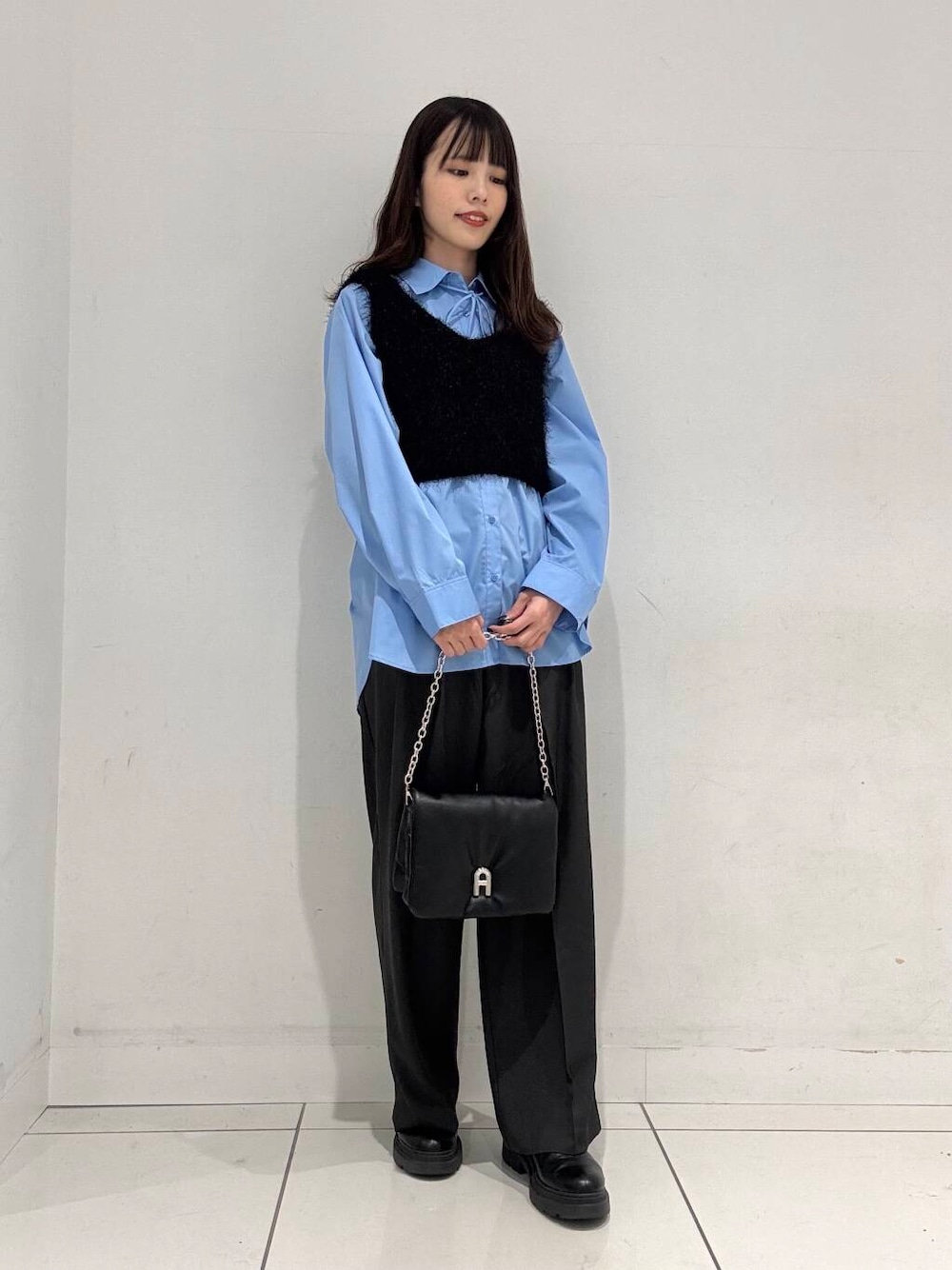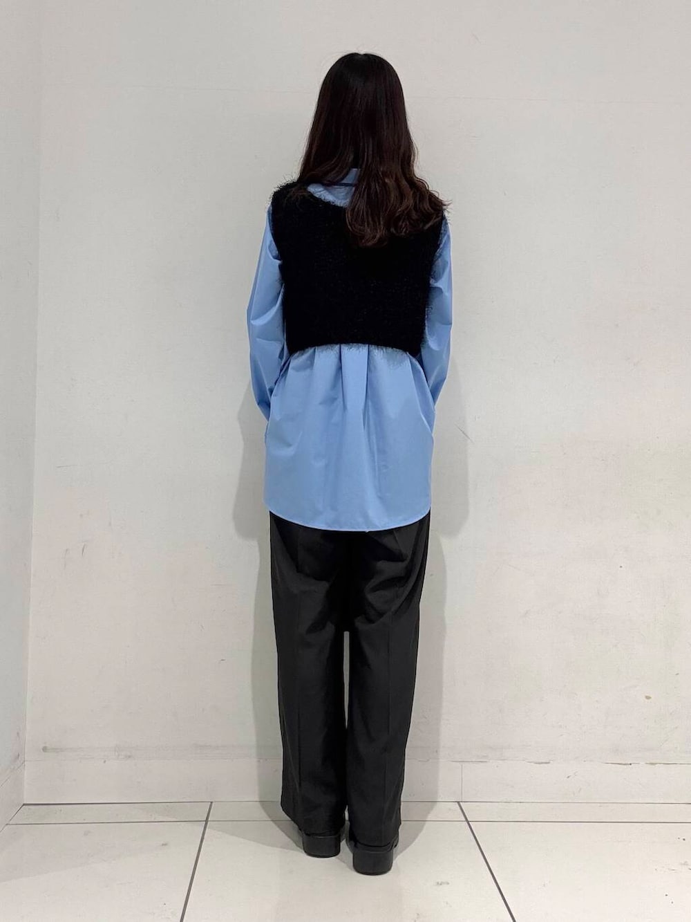 こちらのベストは丈が短めになっており、シャツはもちろん、ロンTなどと合わせるのもおすすめです◎