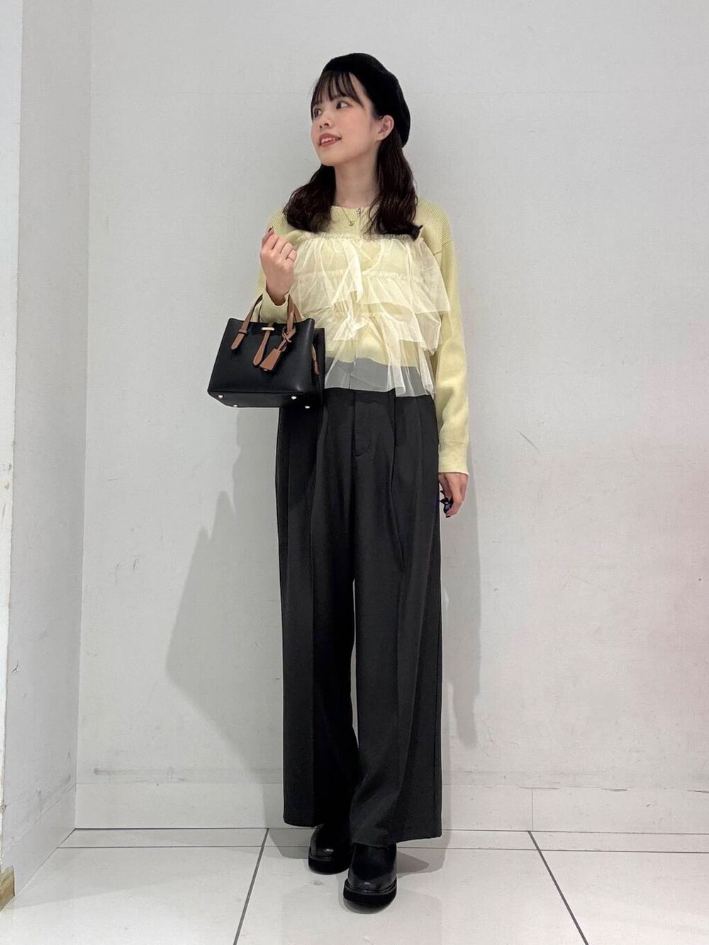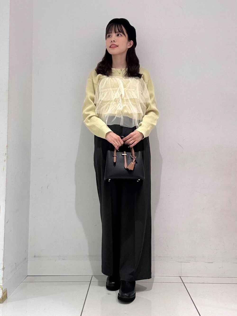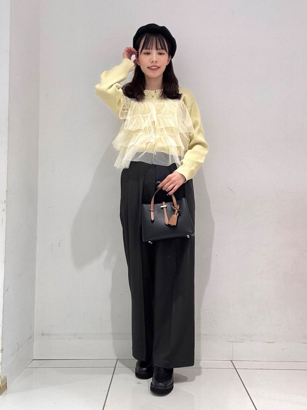 フリルデザインがポイントになっているので、ボトムはシンプルなもので合わせるのがオススメです🙌🏻
