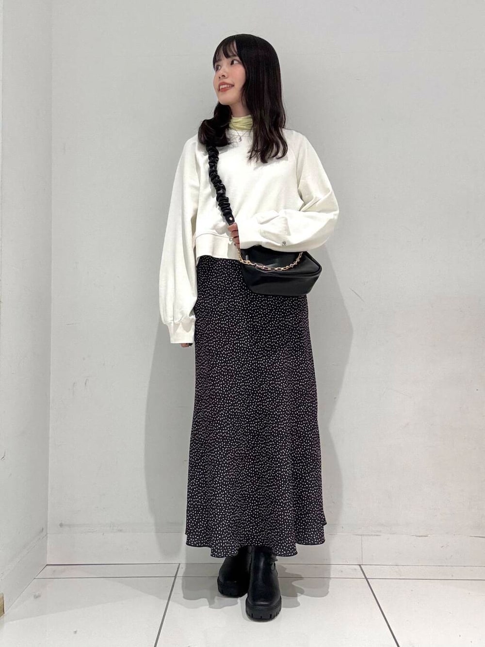 ショート丈のスウェットを使用したカジュアルコーデです🤍💛