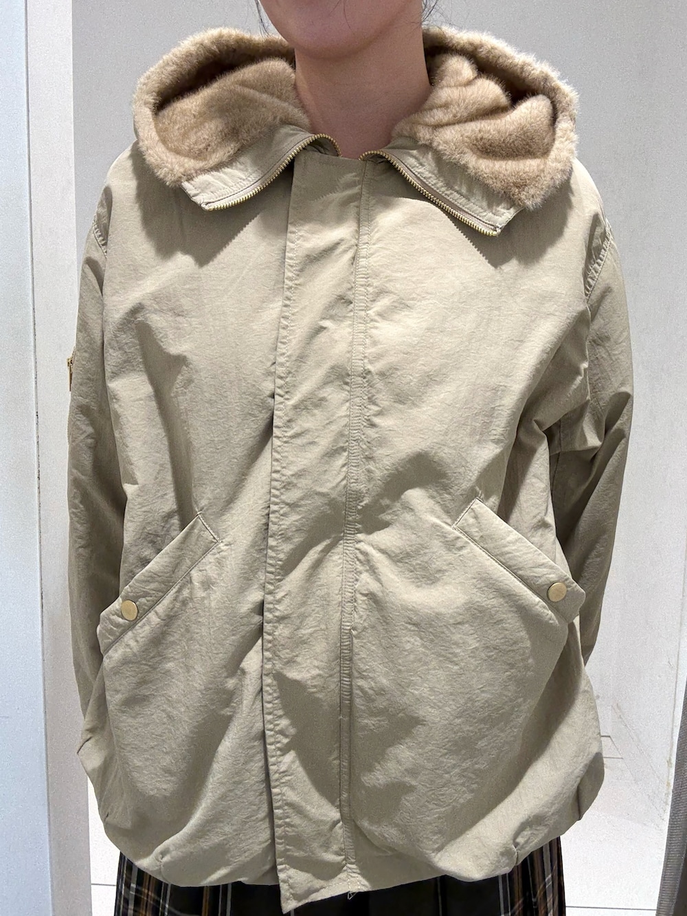 ファー部分はファスナーを開けると襟に閉めるとフードになる2WAY仕様になっています!
