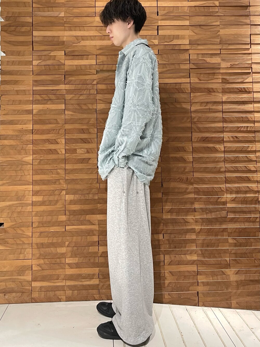 フリンジジャガードレギュラーシャツを使ってワントーンみたいに組んでみました。