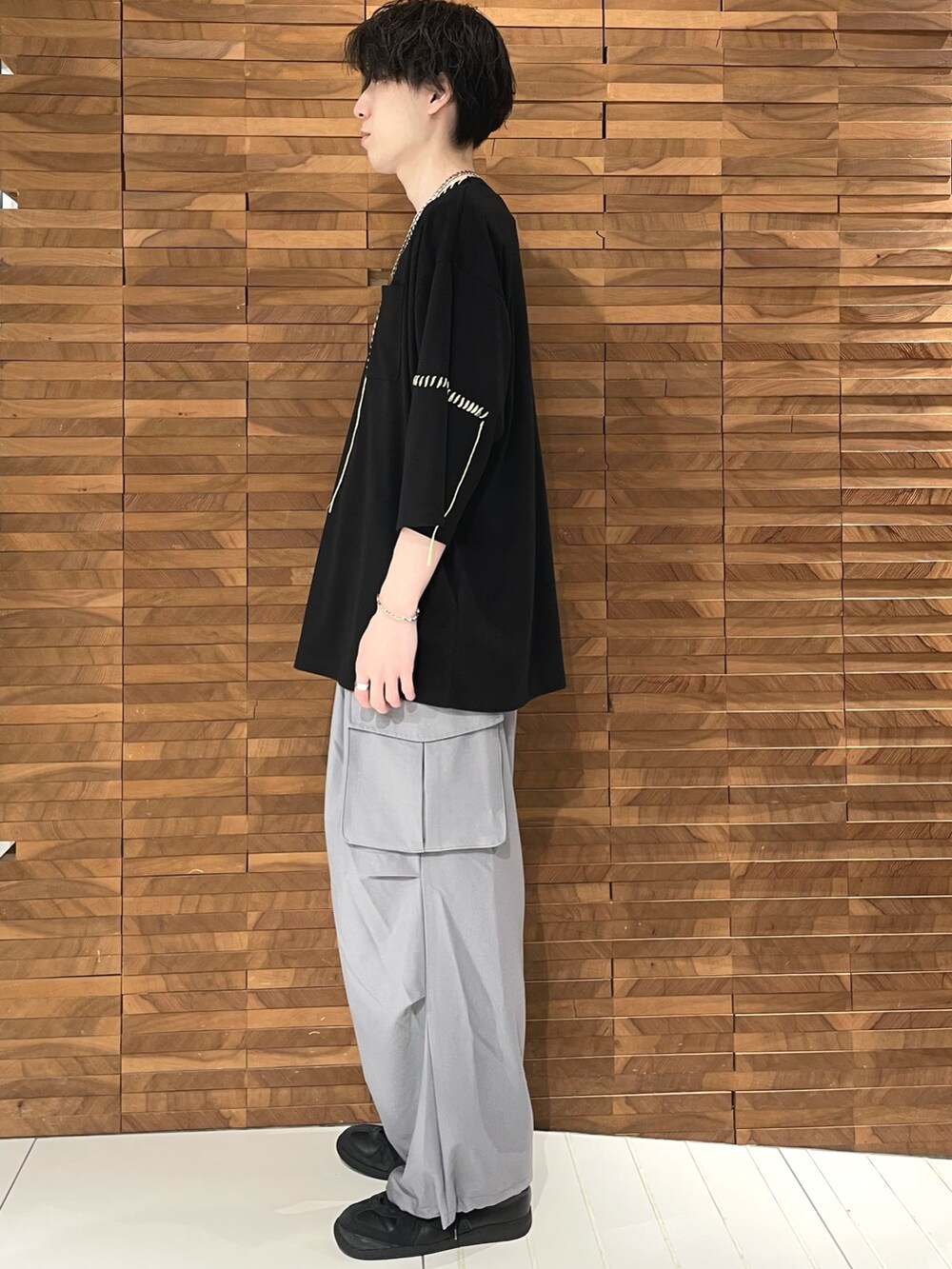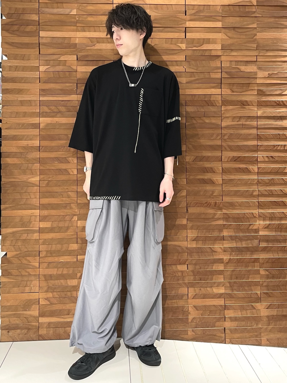 カーゴパンツも前回と比べてランダムタックが追加され動きのあるシルエットになってます。