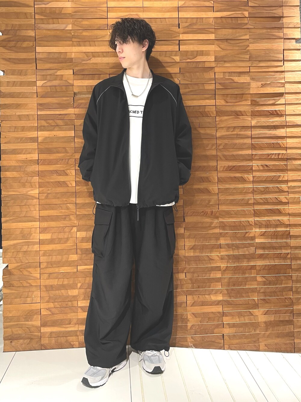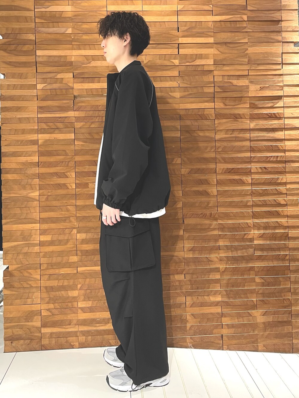 スタンドブルゾンを使ってシンプルにモノトーンでまとめました。