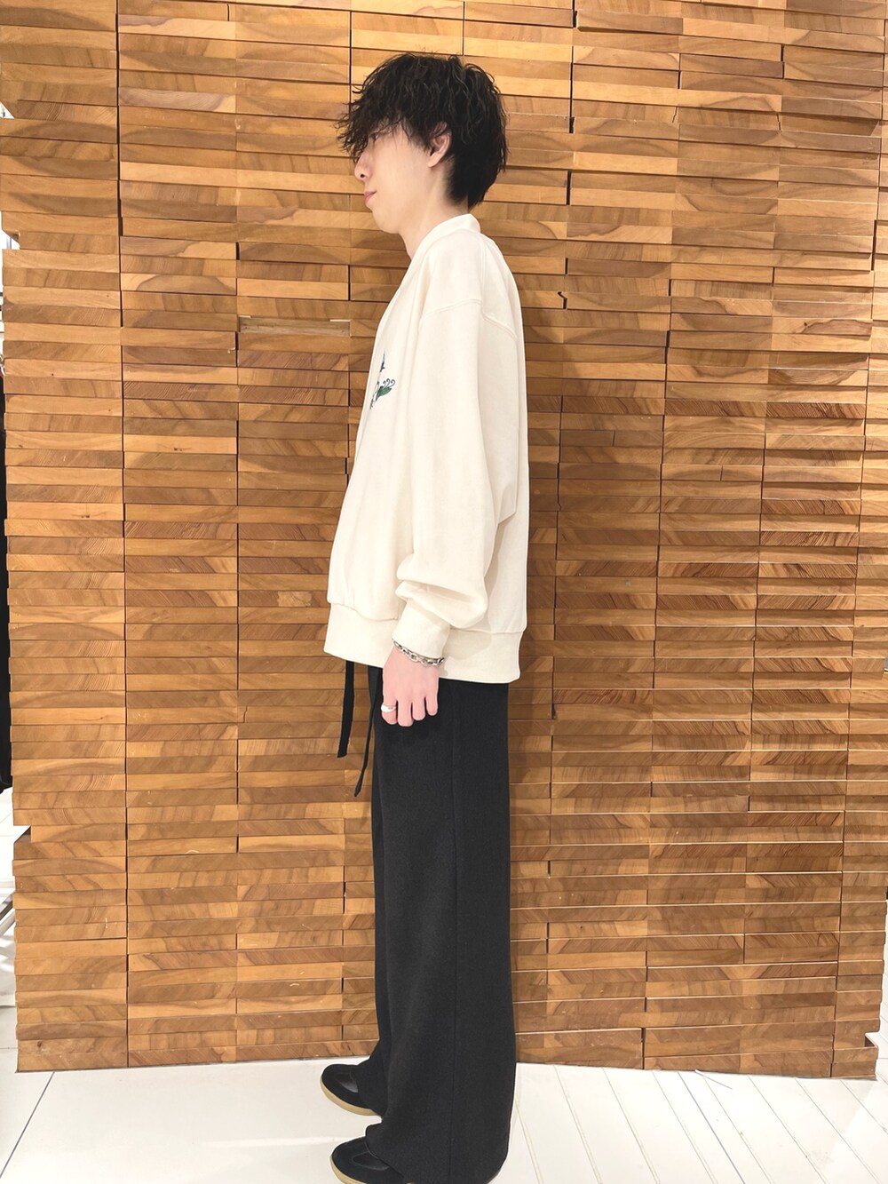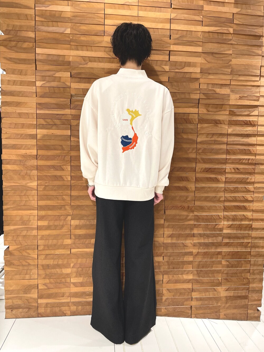新作のシシュウスウェットブルゾンとフレアパンツでクリーンなコーディネートにしてみました。