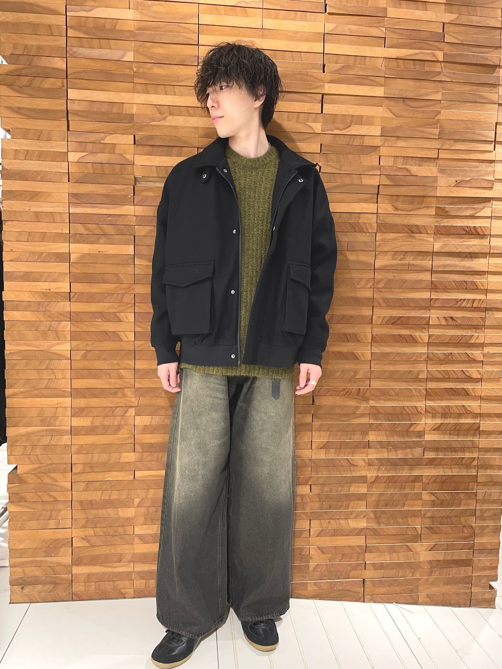 カットメルトンブルゾンは肌触り良く上品な素材なのでカジュアルだけでなくスラックス合わせなどもおすすめです!