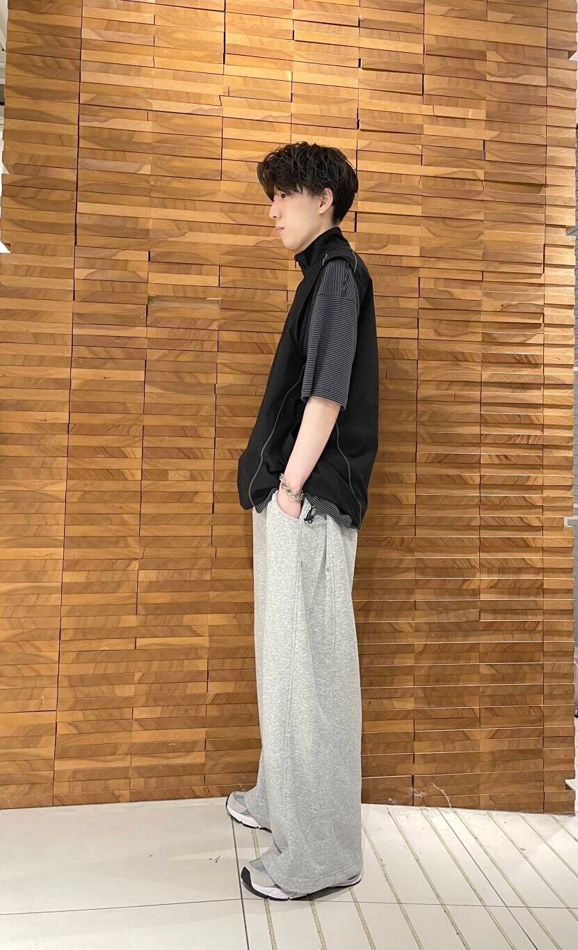 裾が絞れたりサイドのスナップボタンでシルエットが調整できたり使い回し抜群のアイテムになってます。
