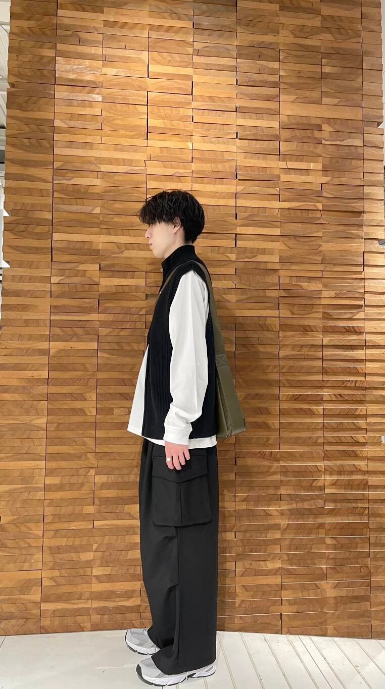 ドライバーズニットベストを使ったカジュアルコーディネートです。