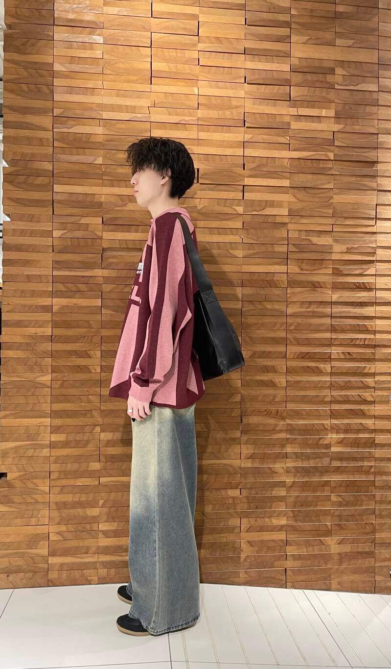 ゲームモチーフニットを使ったコーディネートです。