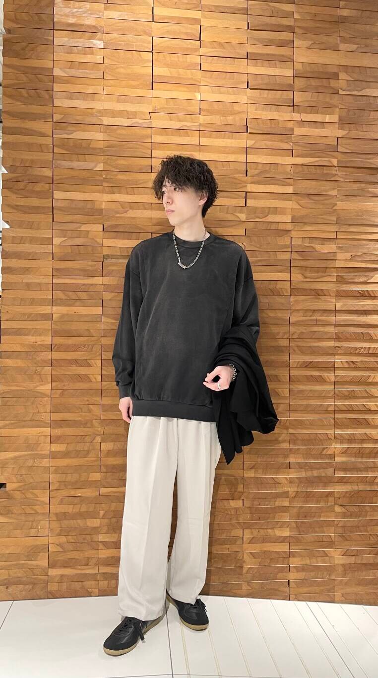 ゆったりとしたシルエットでストレッチも効いているのでストレスなく着やすいアイテムになってます。