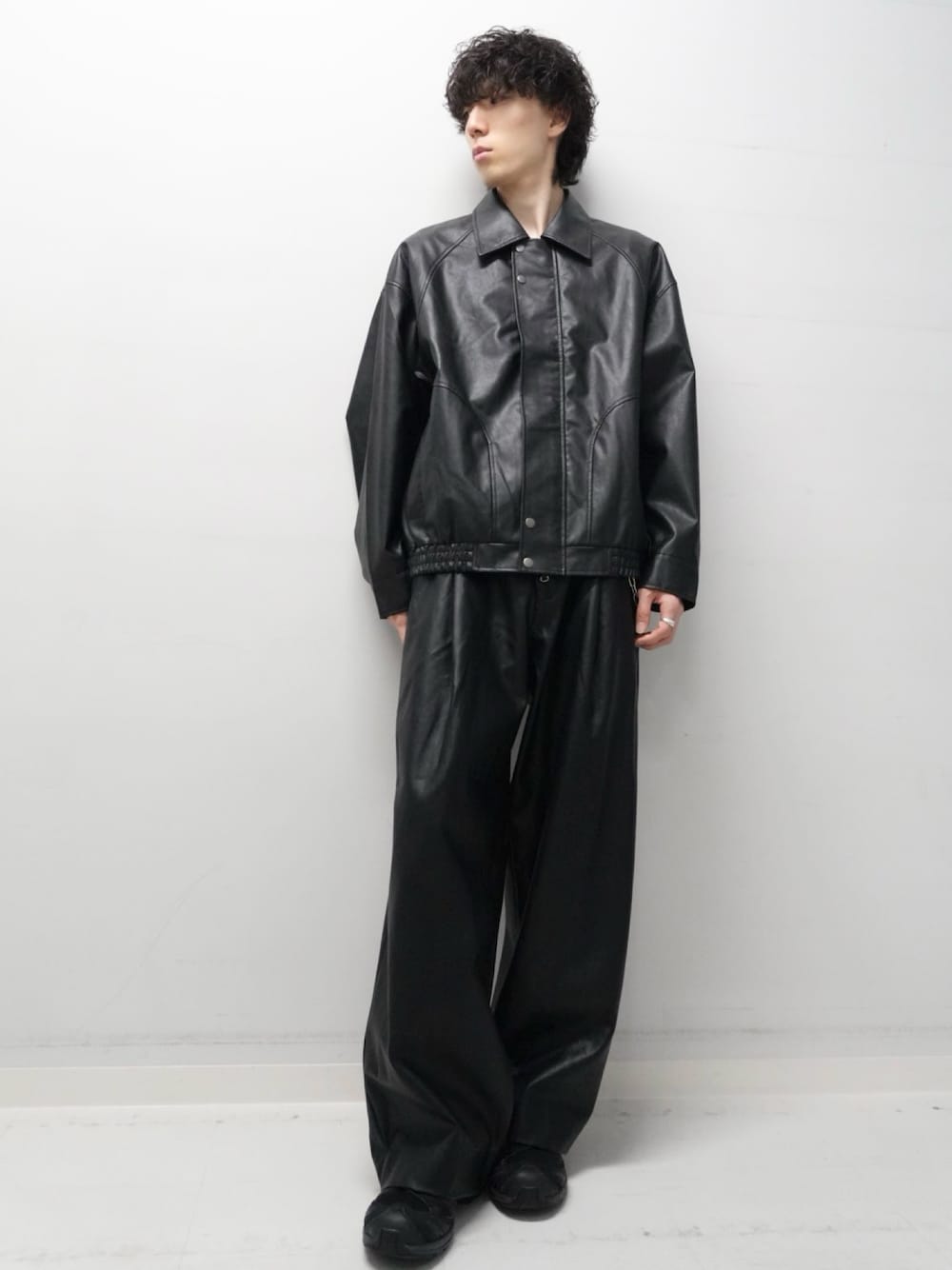今回はレザーブルゾンにセットアップ風にレザーパンツを合わせてみました。