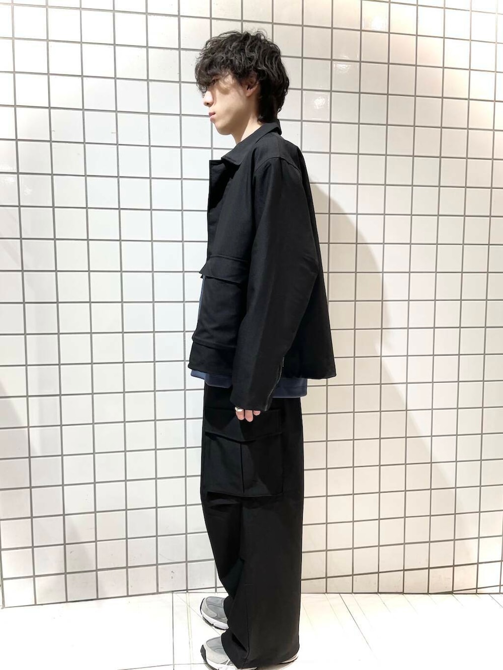 お馴染みのワイドカーゴパンツとセットアップのブルゾンを使ったコーディネートです。
