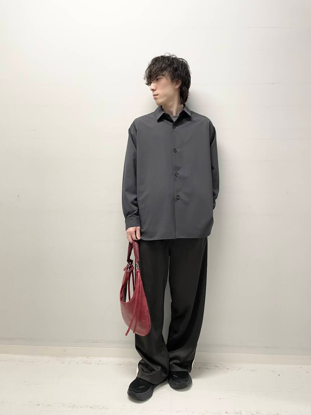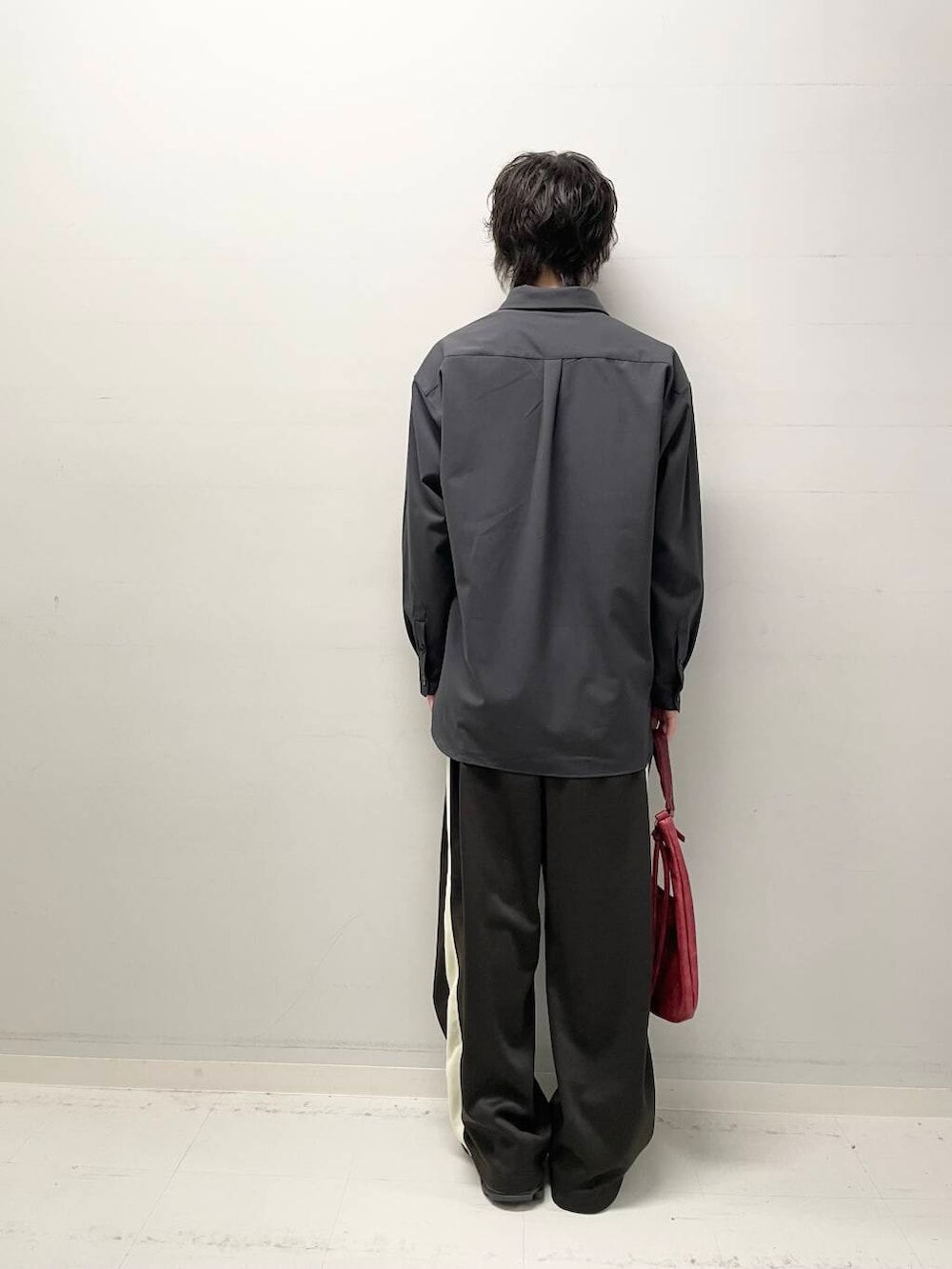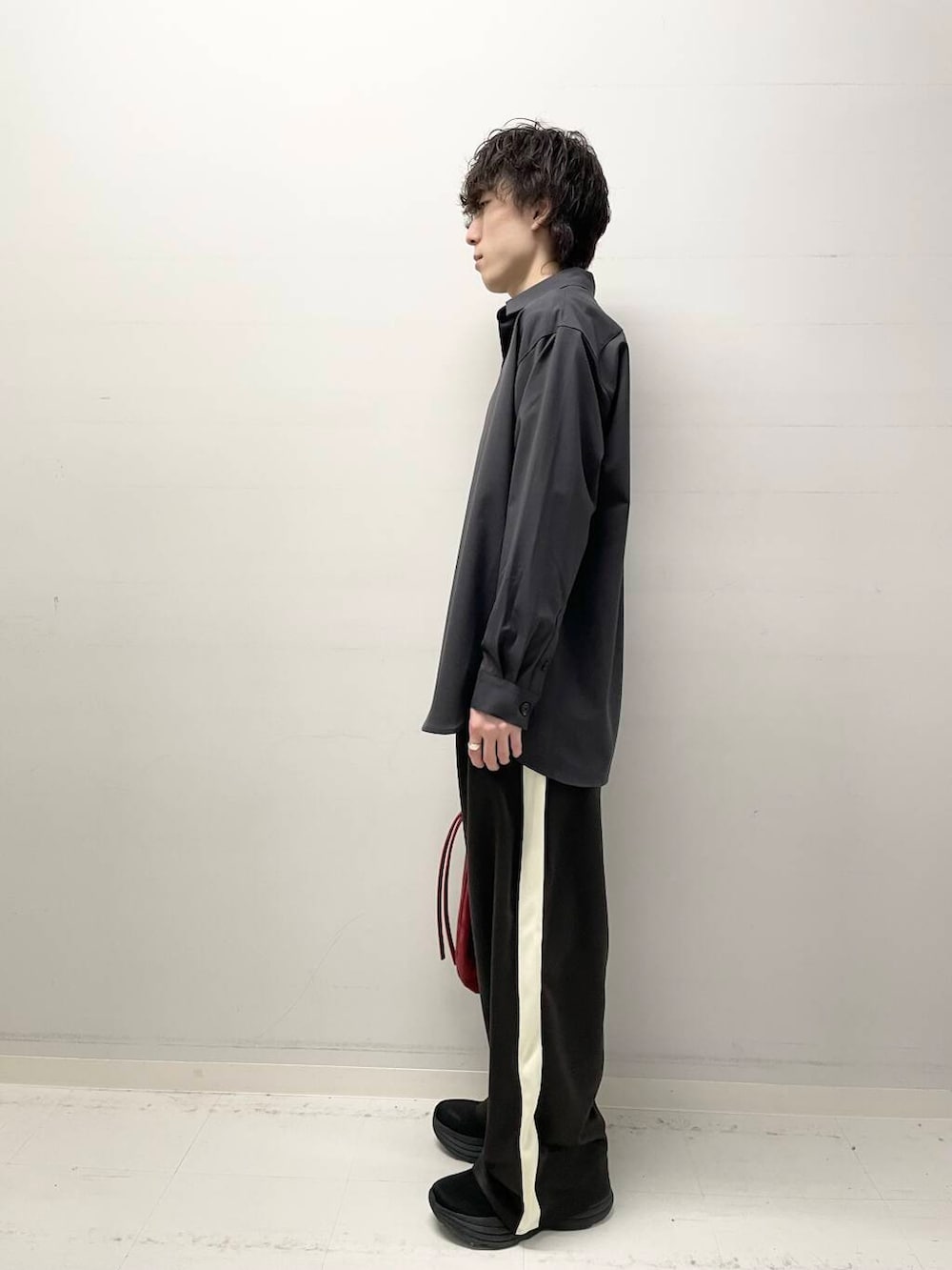 大人気のカラールーズシャツにジャージパンツを合わせたラフスタイリングです。