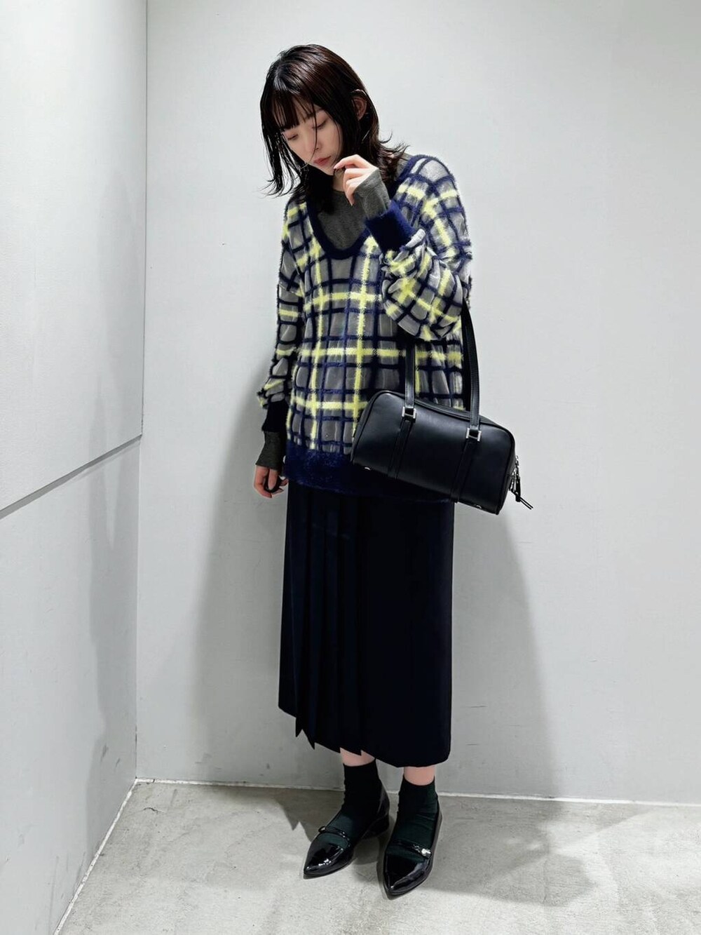 シアーチェックフェザーニットは一枚で主役になる楽ちんなアイテムで、ボトムを選ばないため着回し優秀です◎