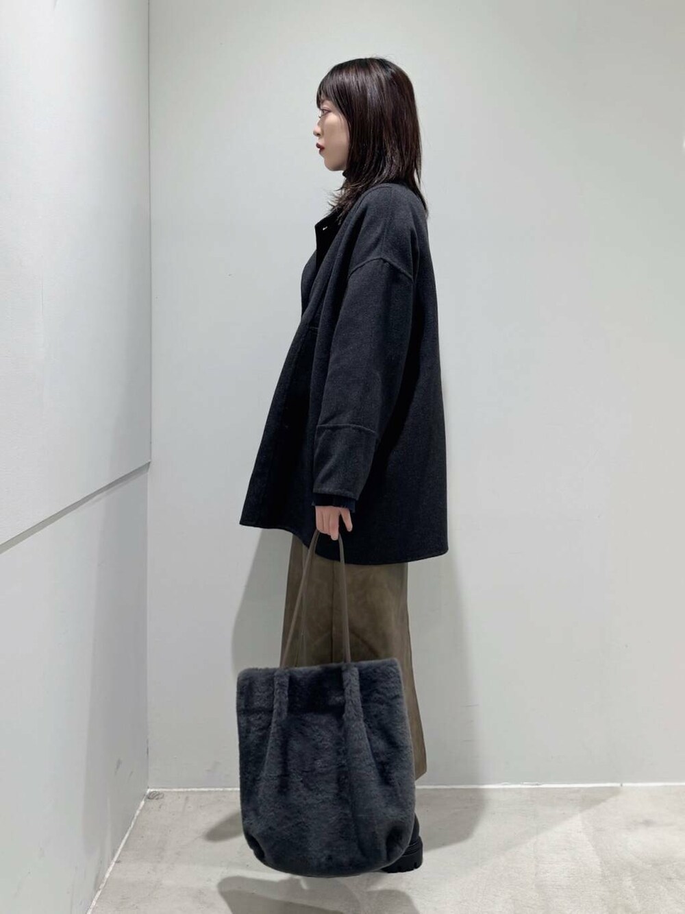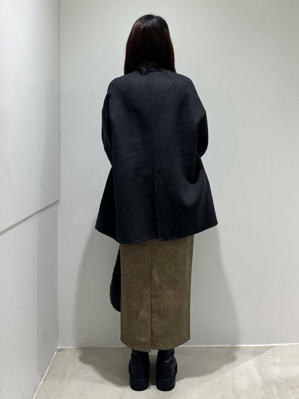 リバーノーカラーミドルコートは裏地がないため柔らかい印象で軽く着れます♪