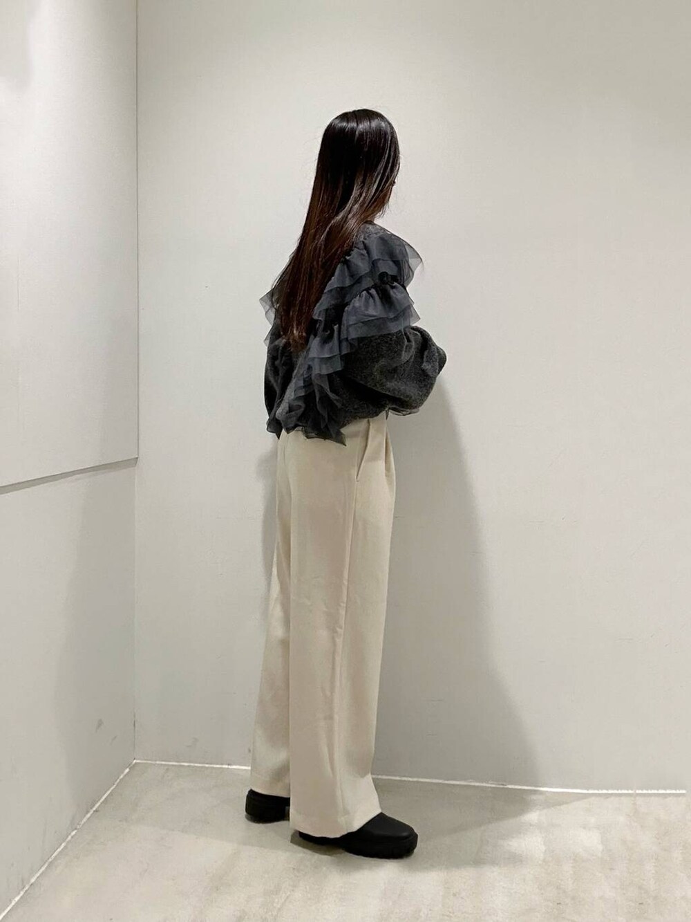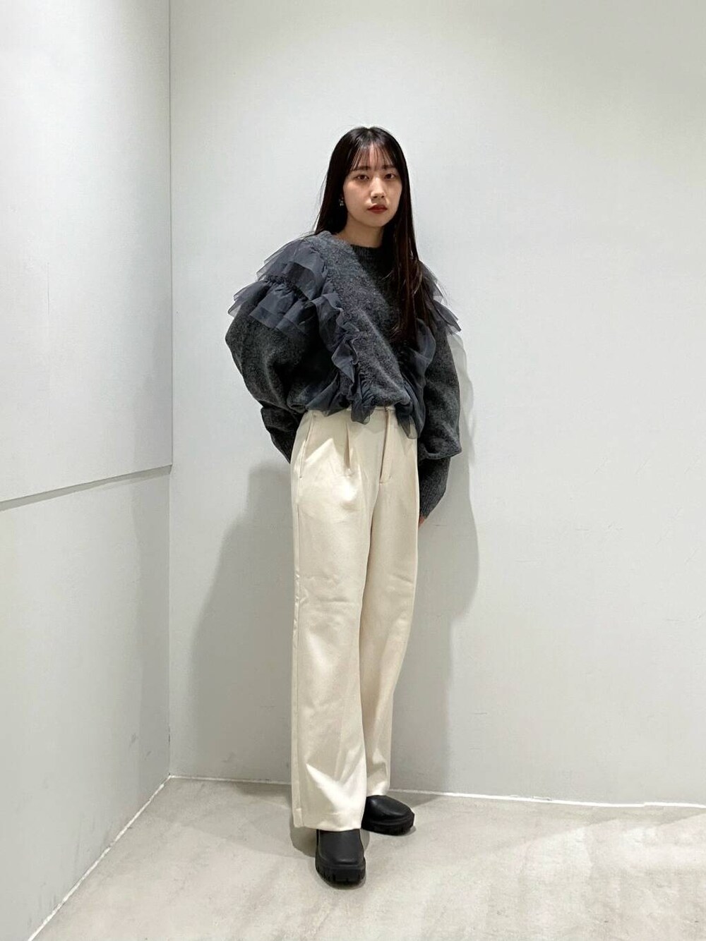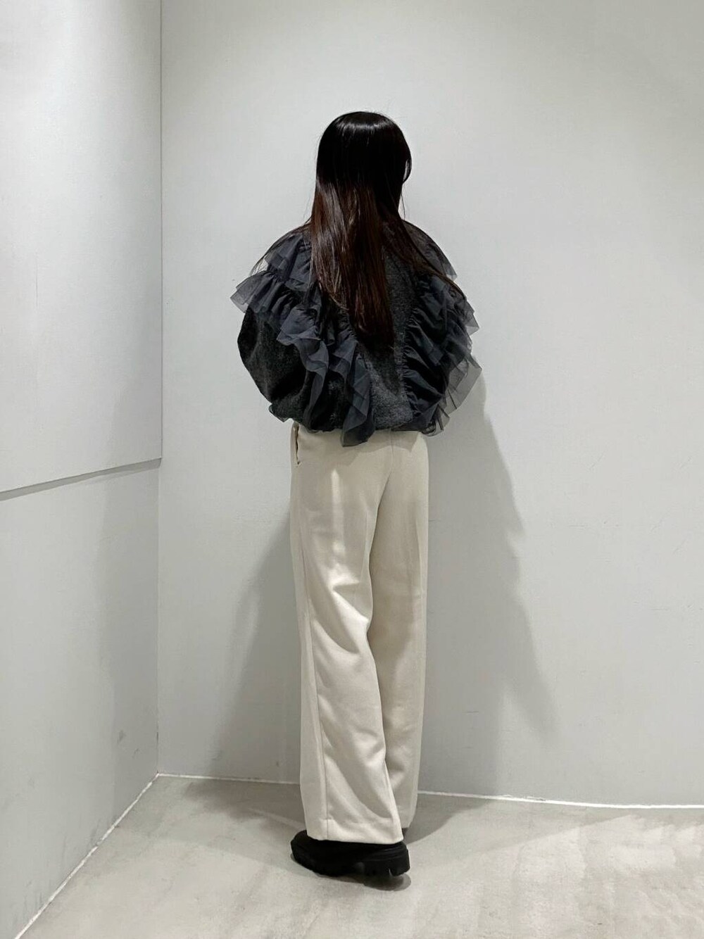 今回着用のセーターはトレンド感のあるフリルのチュールがポイントです!