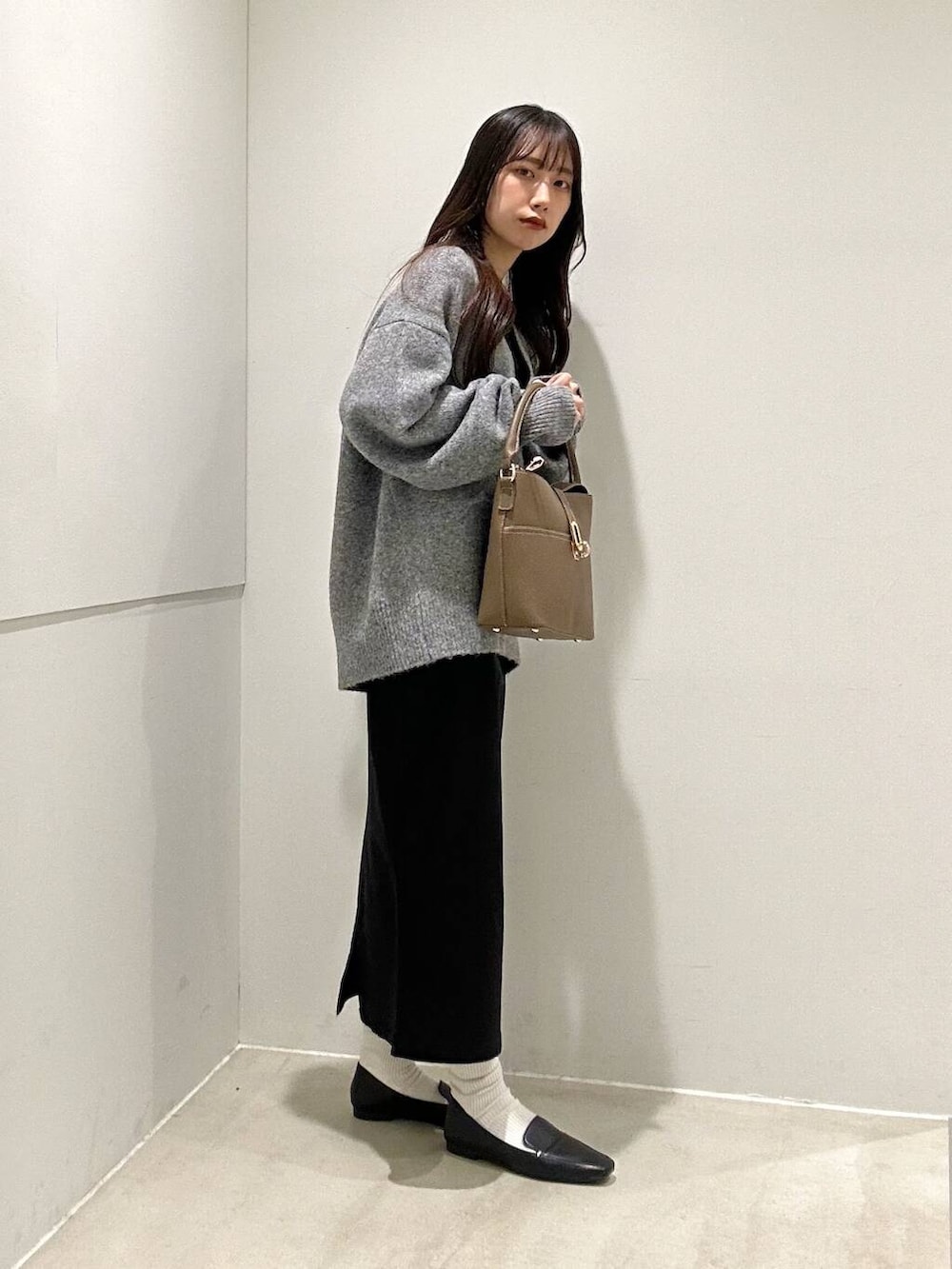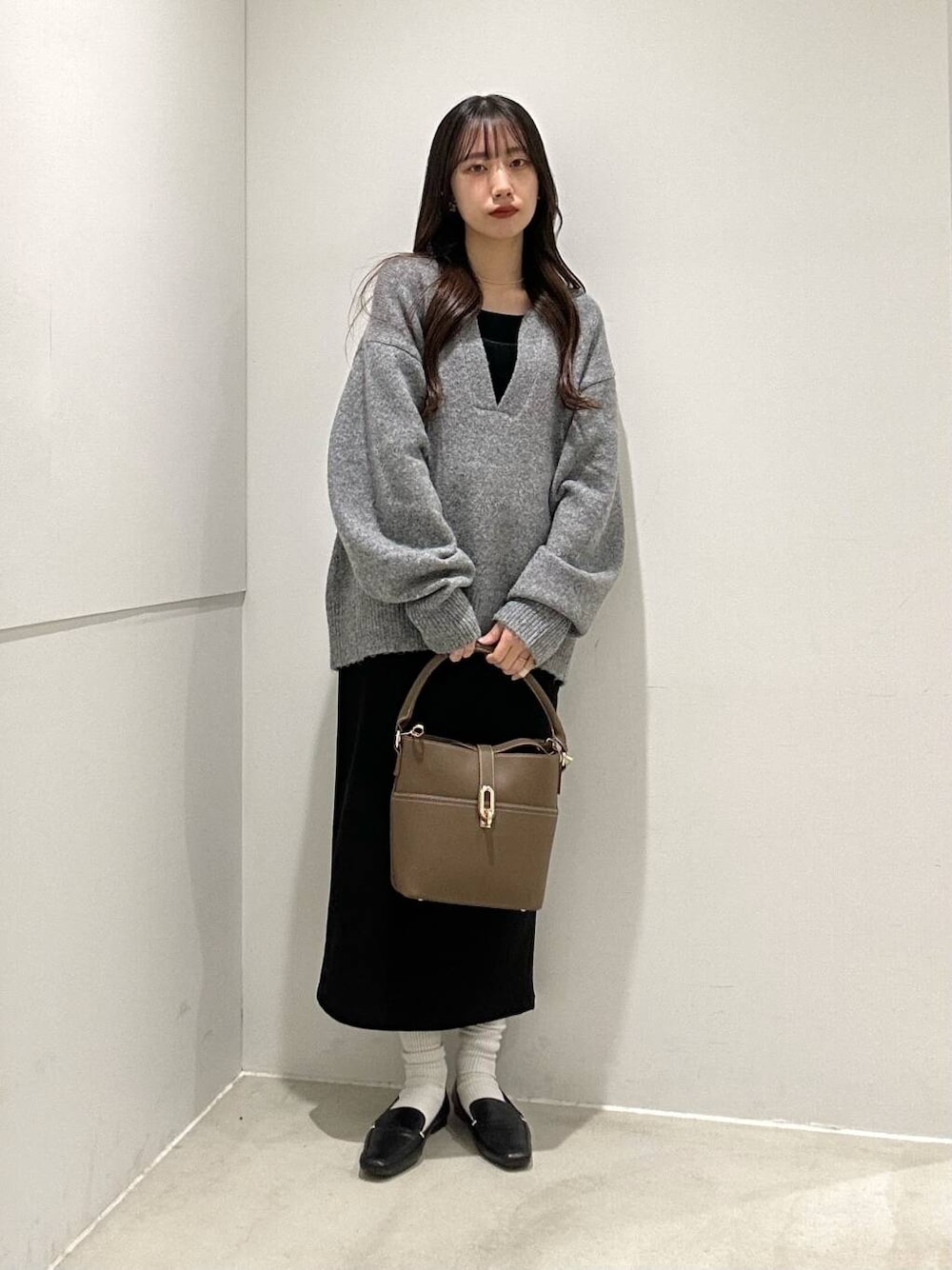 ゆったりとしたシルエットとすっきりとした首元でバランス◎です!