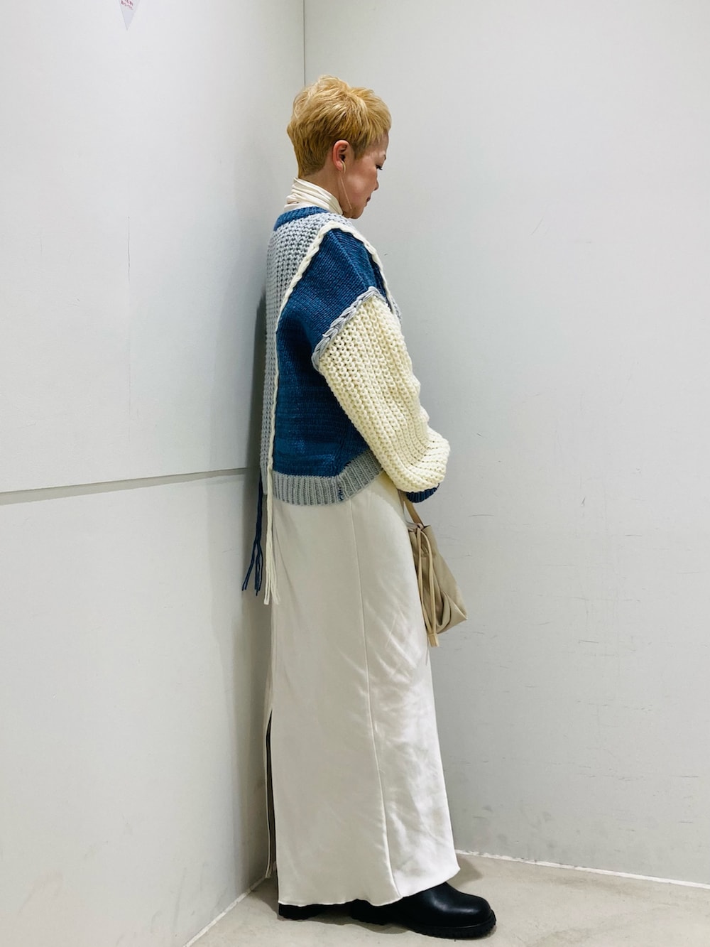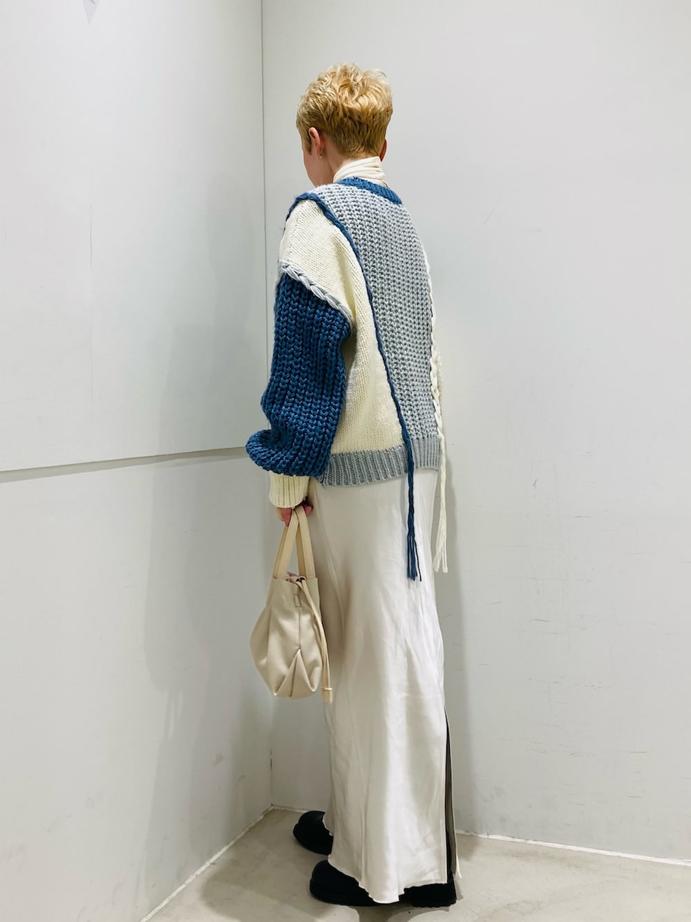 編み目ラインが裾に向かってVになっていて、ウエストまわりがスッキリ見えます!