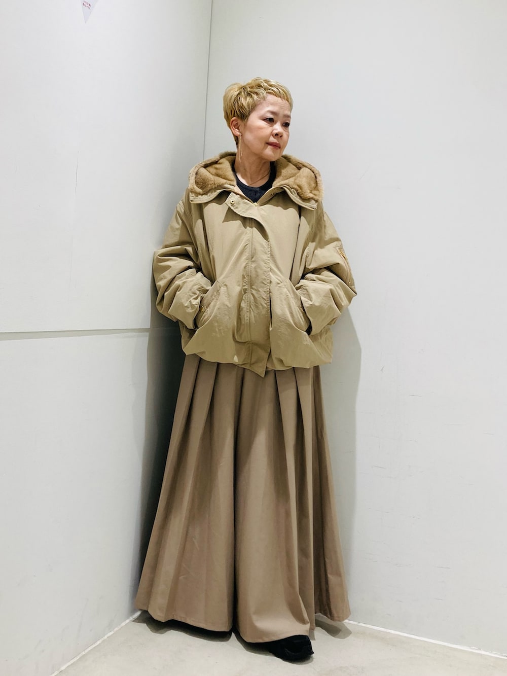 袴のような裾幅のあるパンツは、スカートよようにも見えてシルエットがキレイです!
