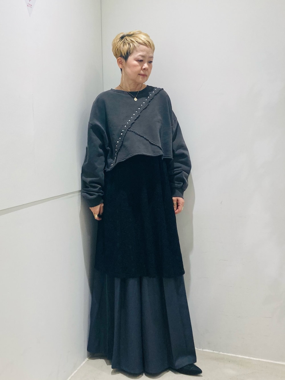 素材の違うグレーのアイテムでワントーンコーデをしました♪