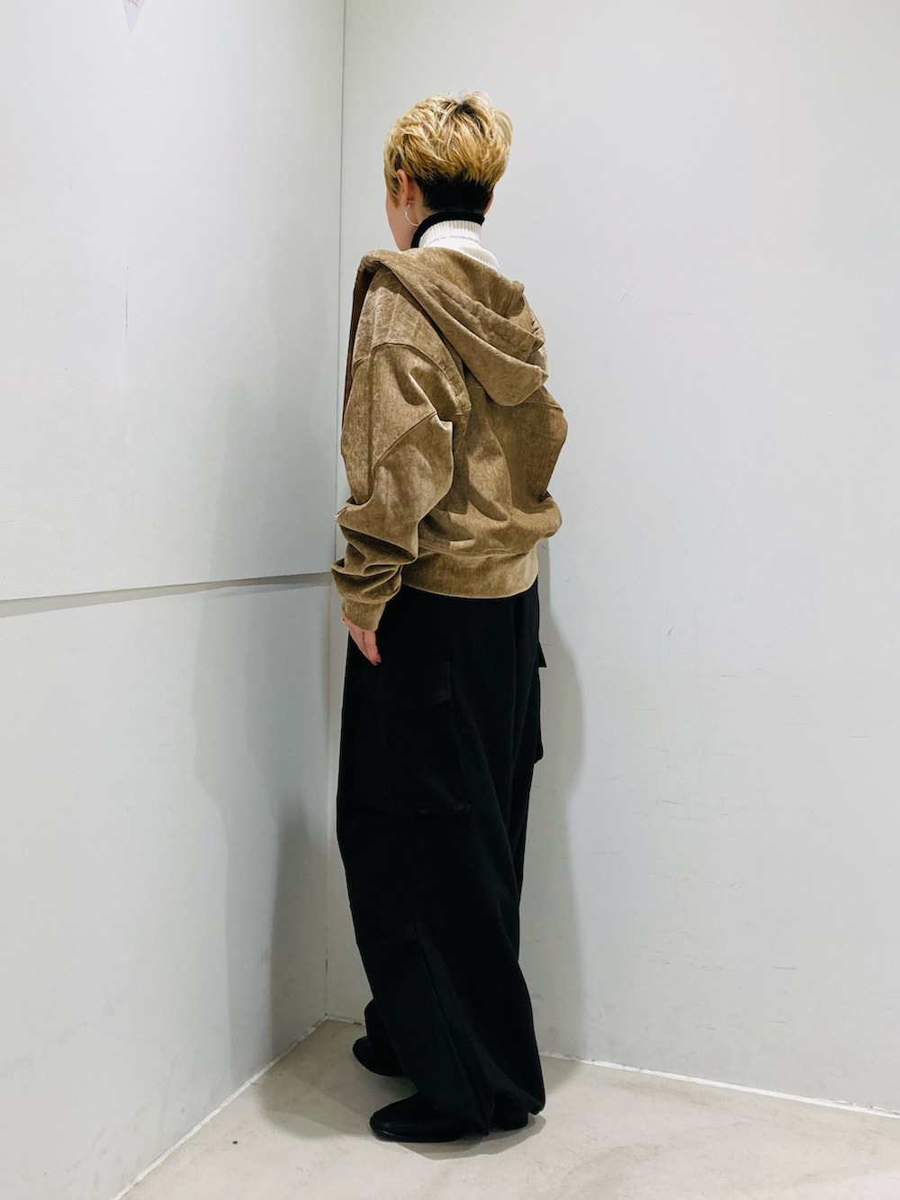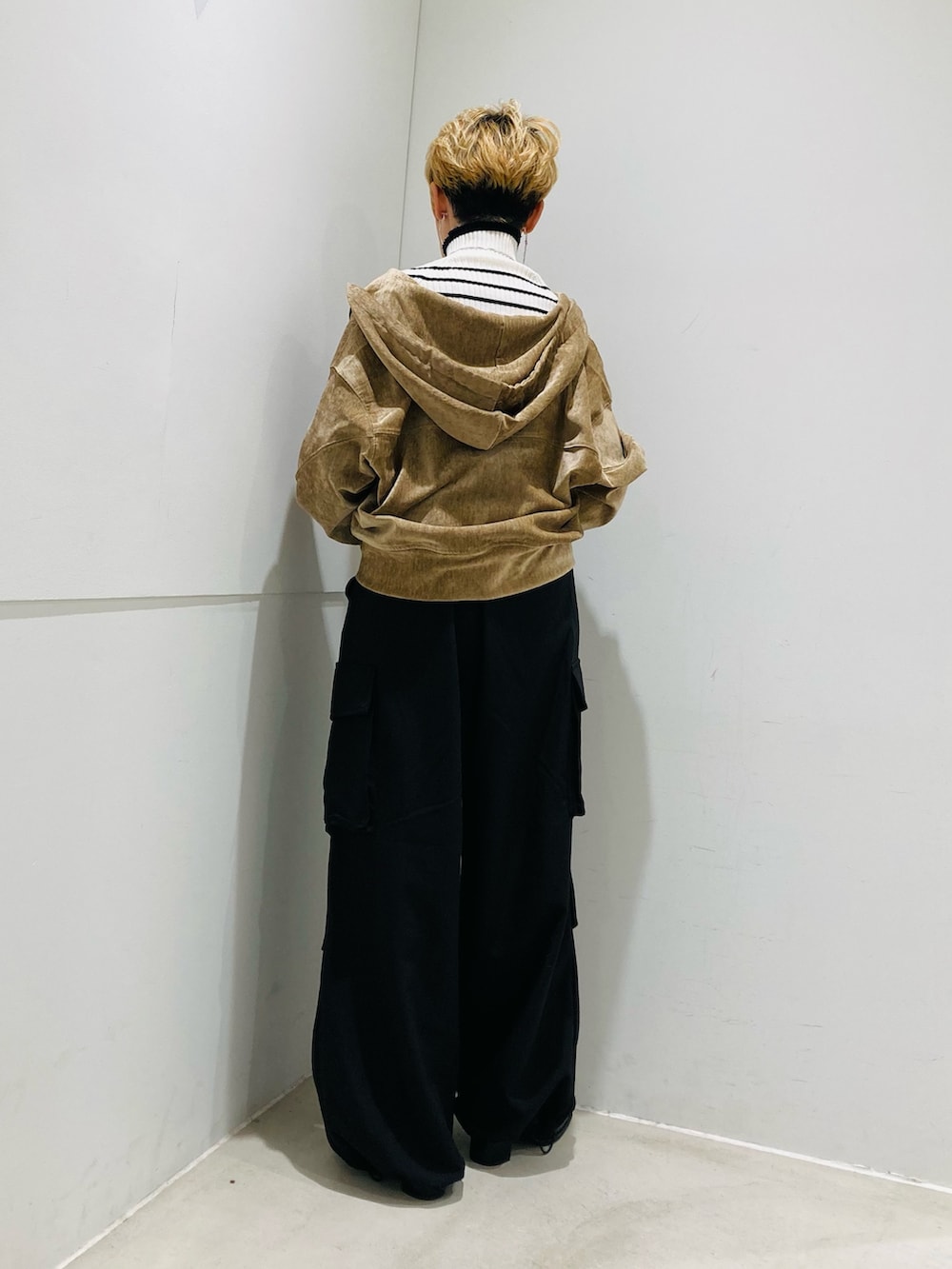パーカーは、ベロア素材・リボン・ダブルジップと、キレイめにも着こなせます👍