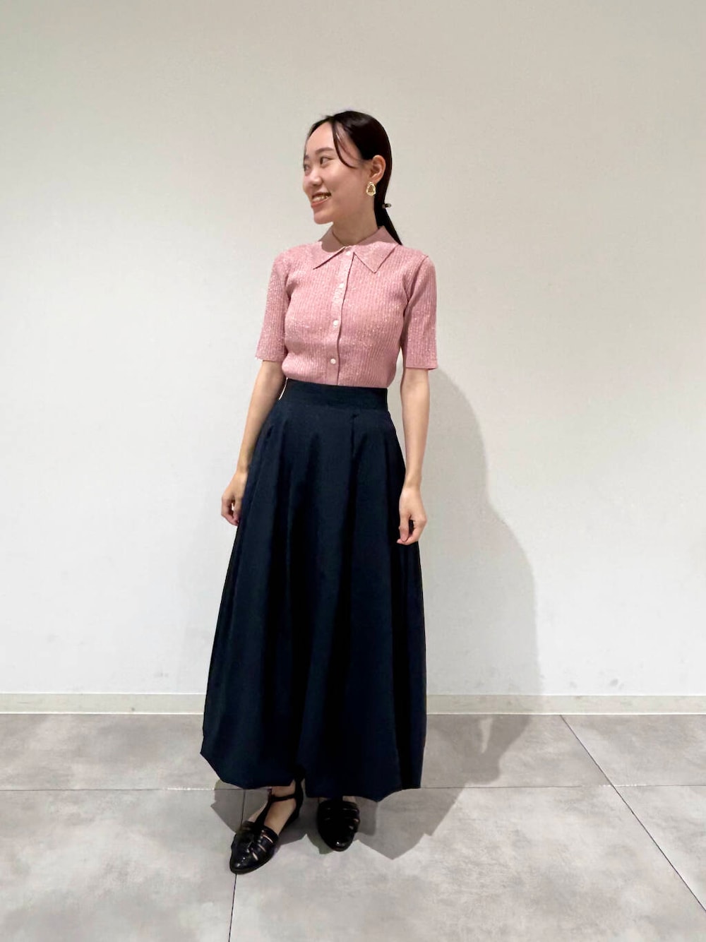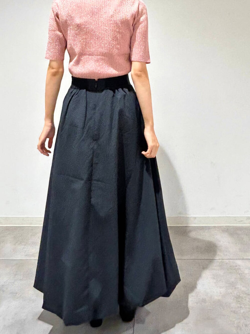 下に向かってふんわりと広がりボリュームがあるので、トップスはコンパクトなものと合わせるのがおすすめです♪