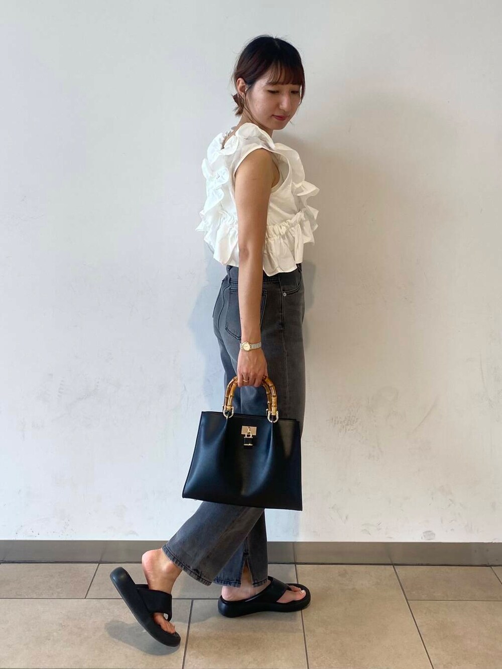 オフショルにもなるトップスはボリューム感があるので、デニムでカジュアル合わせがおすすめです◎