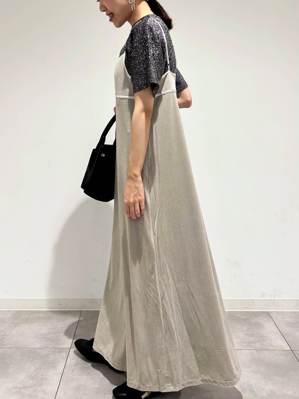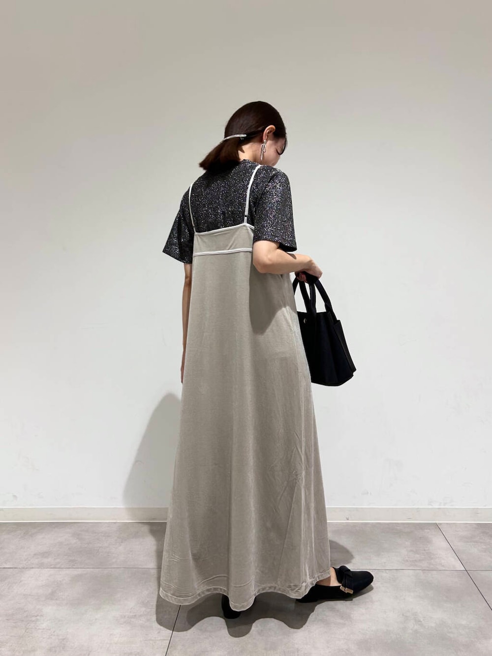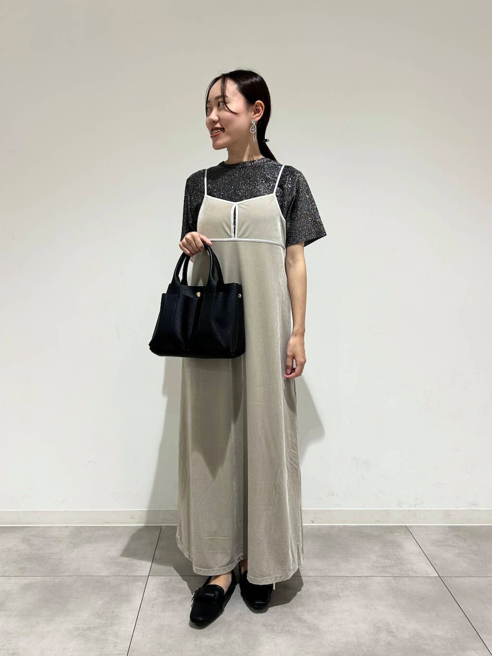 ゆったり着られて楽ちんなキャミワンピースがベロアの生地になっていることで、一気に季節感を演出してくれます。