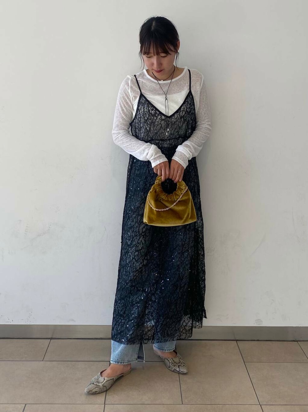透け感のあるスパンコールキャミワンピはパンツとのレイヤードがおすすめです^_^