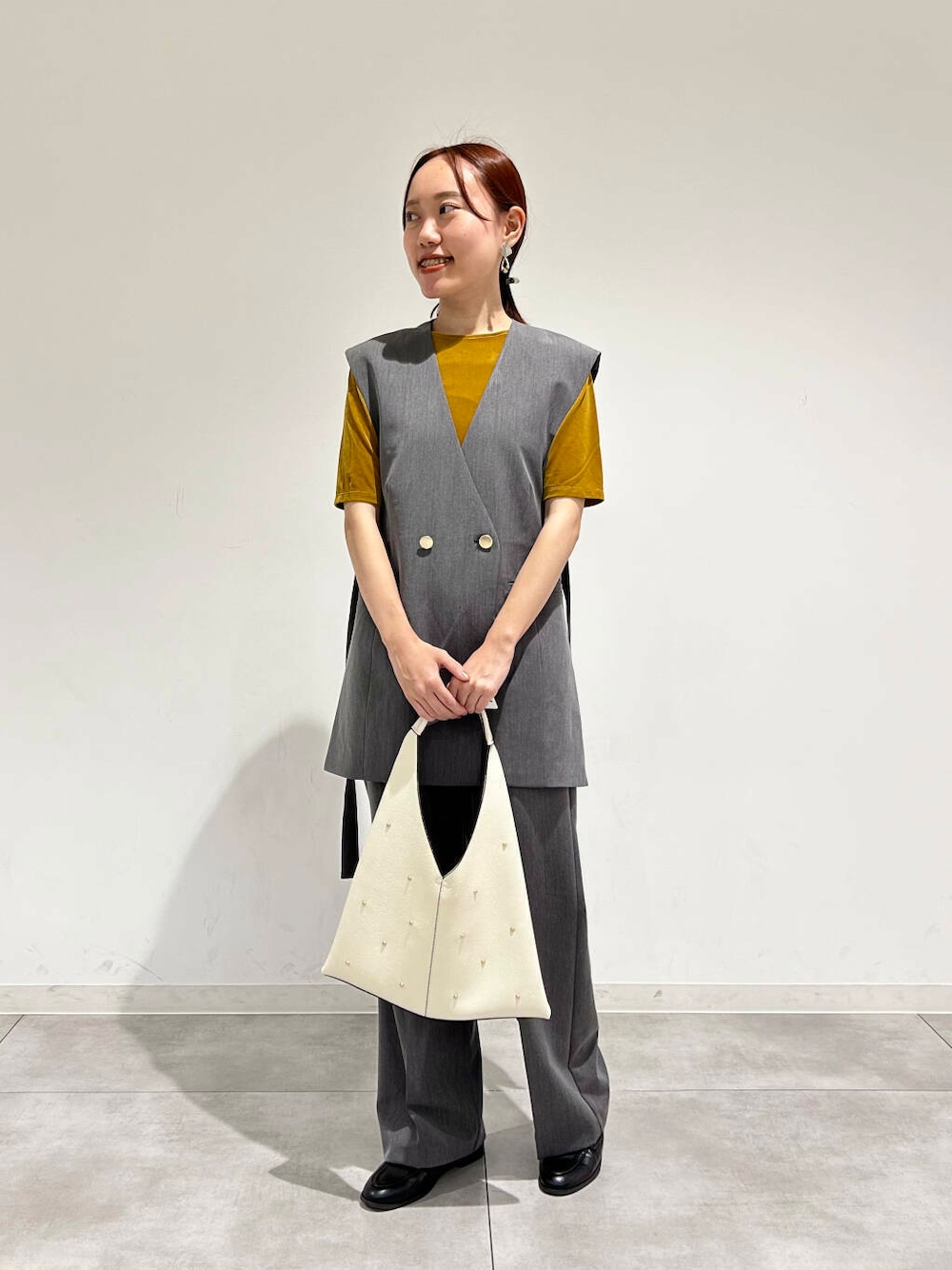どんなトップスとも相性抜群な万能ジレです。