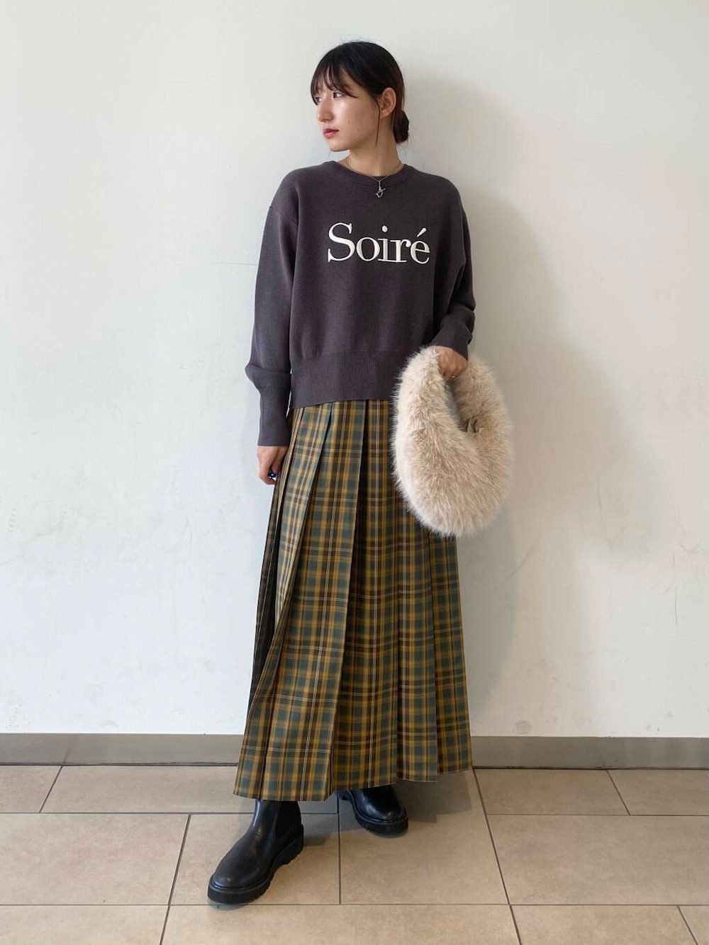 トレンドのチェックプリーツスカートはウエストがゴムなので楽ちんです♩♩