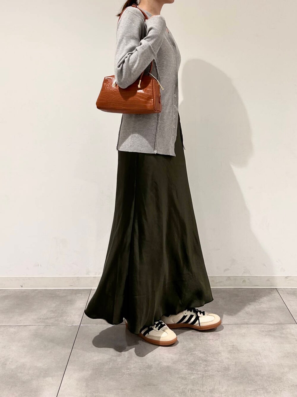 程よい光沢感の生地が歩くたびに揺れて上品さを出してくれます♡